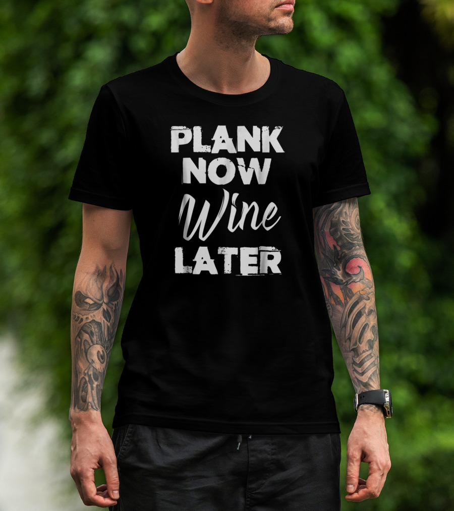 Plank Now Wine Later Planking Fitness Motivation Yoga Pilates Exercise T-Shirt
