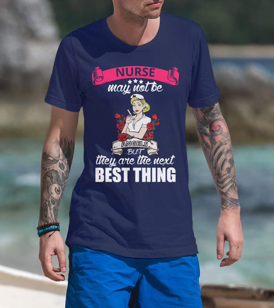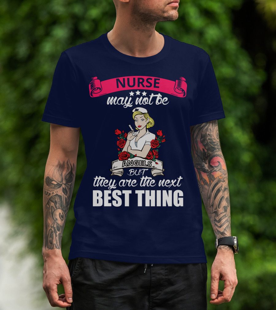 The Nurse May Not Be Angels But They Are The Next Best Thing T-shirt is designed for everyday wear and a consistent fit. Fabric is pre-shrunk ring-spun cotton with durable stitching. See the size chart below for exact measurements.