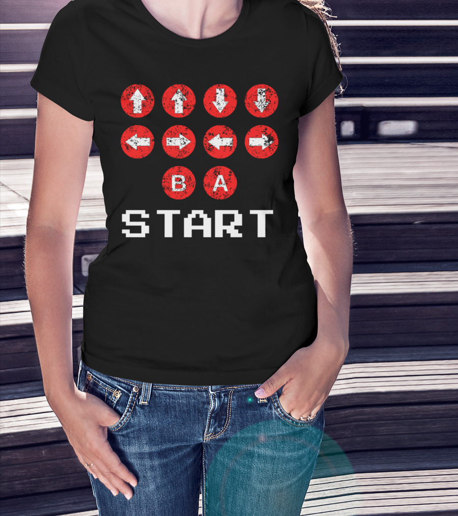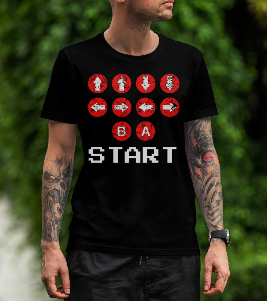 Konami Code Vintage Gaming Up Up Down Down Left Right B A Start T-Shirt