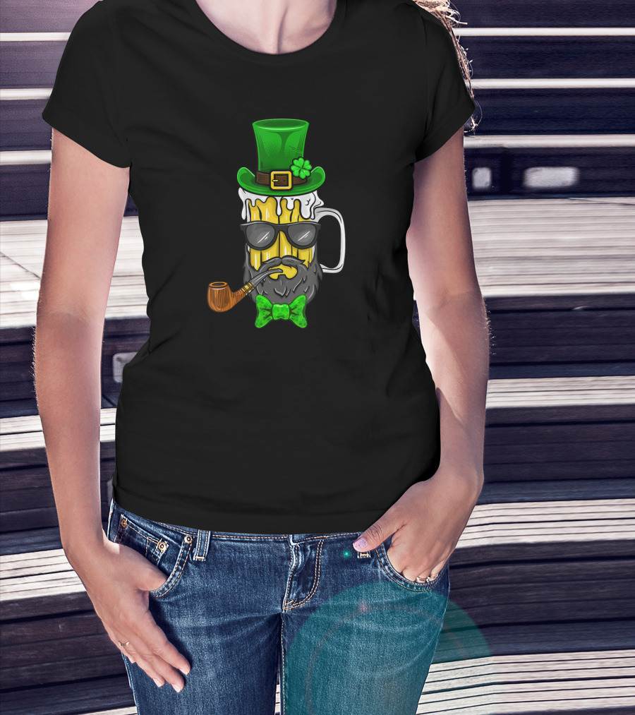 St Patricks Day Leprechaun Beer Mug With Beard And Green Hat T-Shirt