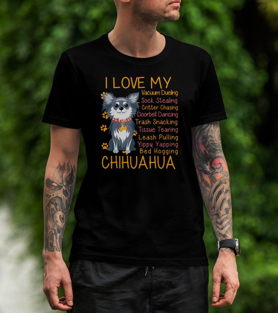 I Love My Vacuum Dueling Sock Stealing Critter Chasing Doorbell Dancing Trash Snacking Tissue Tearing Leash Pulling Yippy Yapping Bed Hogging Chihuahua T-Shirt