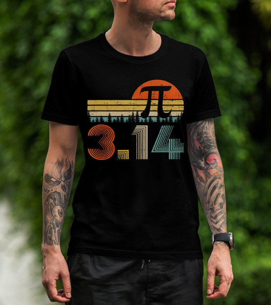 Pi Day Math Teacher 3.14 Retro Sunset Forest T-Shirt