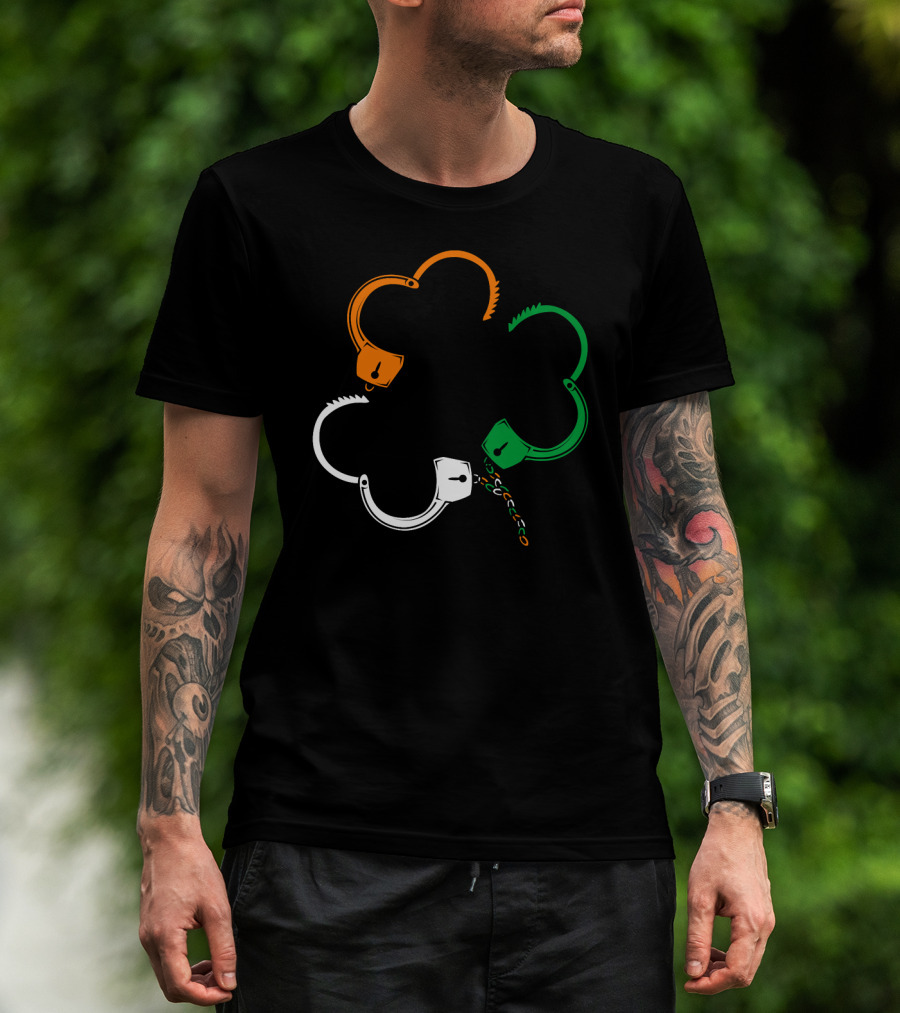 St Patricks Day Irish Flag Handcuffs Clover Police Officer T-Shirt