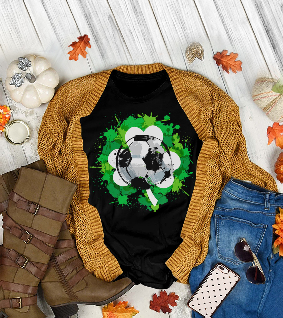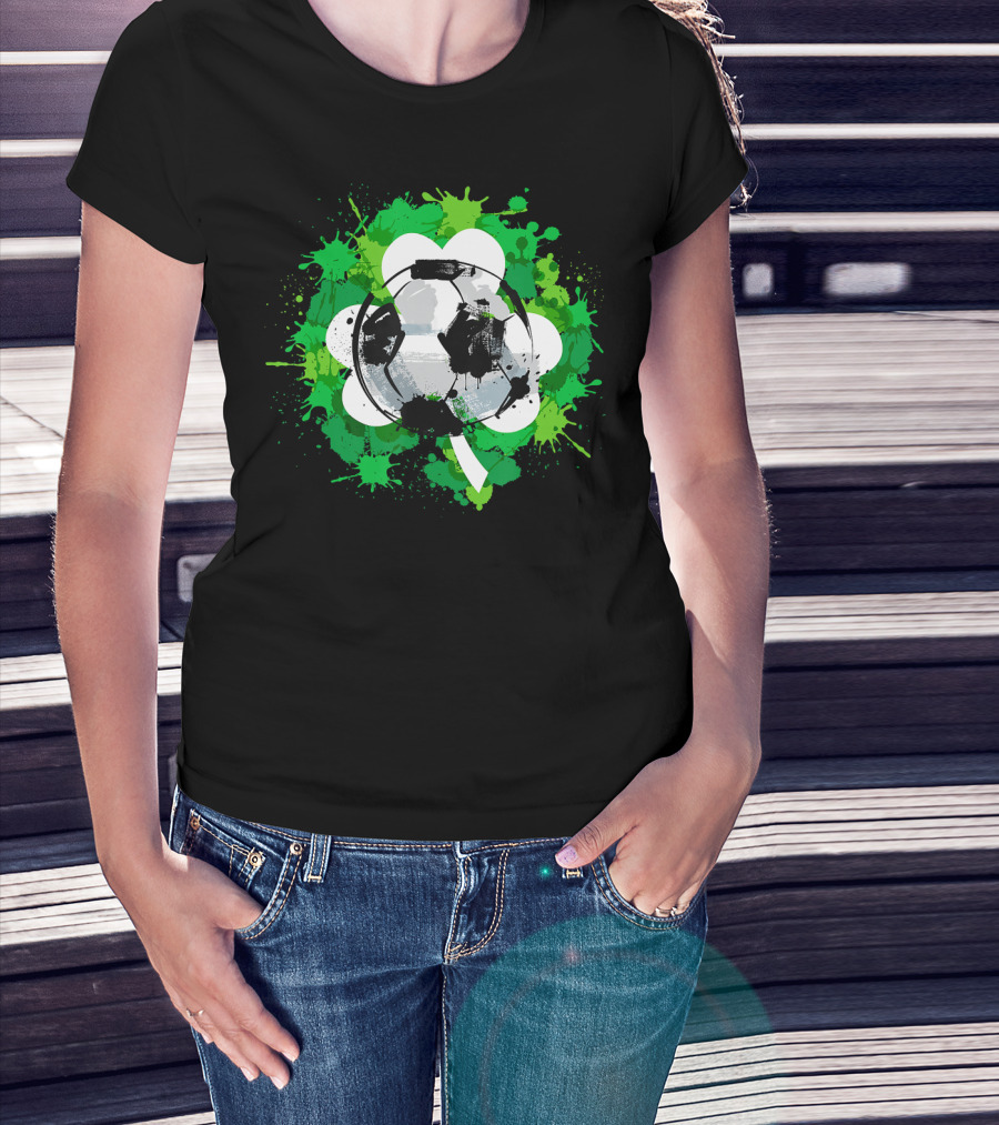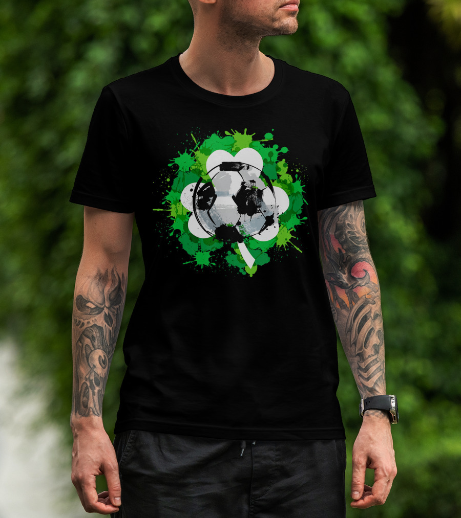 St Patrick's Day Soccer Ball Shamrock Green Splatter T-Shirt