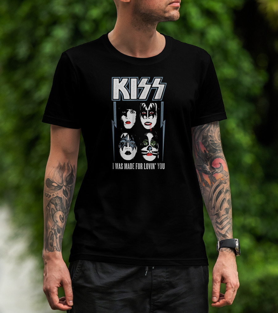 The KISS I Was Made For Lovin' You Band Faces T-shirt is designed for everyday wear and a consistent fit. Fabric is pre-shrunk ring-spun cotton with durable stitching. See the size chart below for exact measurements.