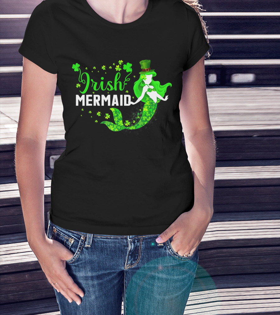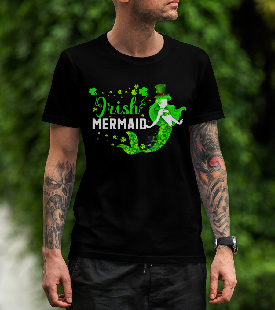 Irish Mermaid St Patrick Day Clover Hat T-Shirt