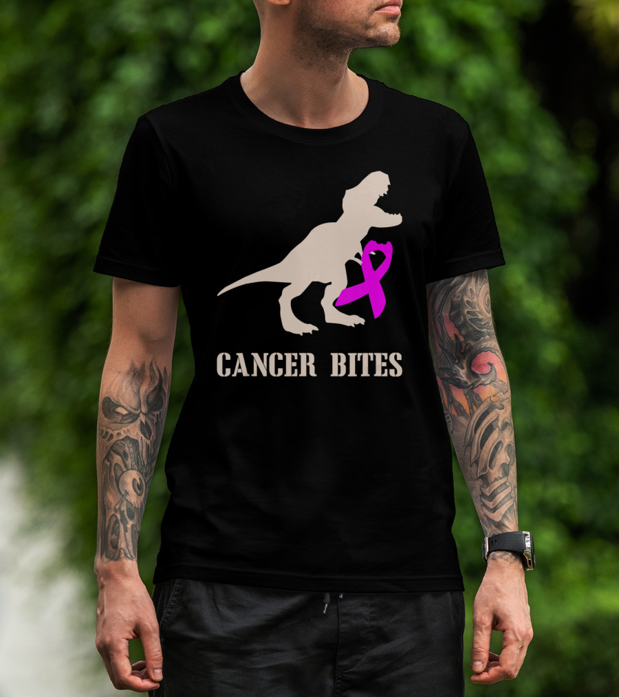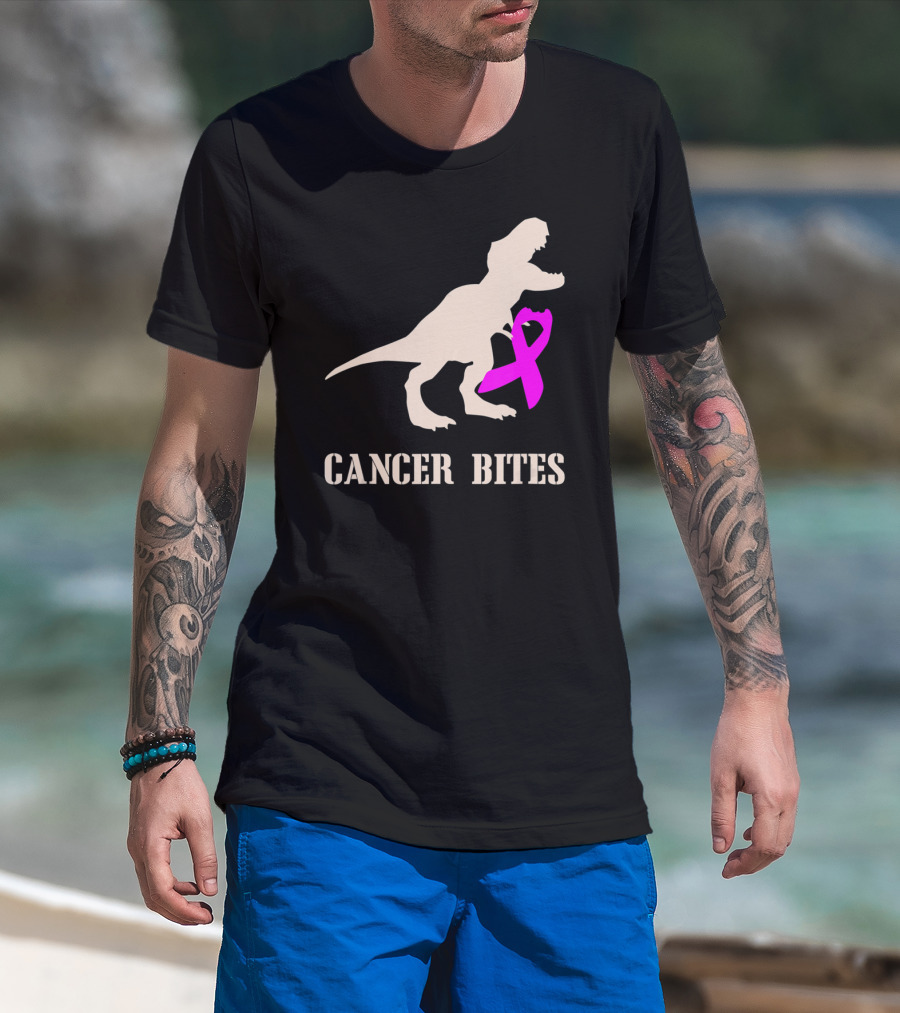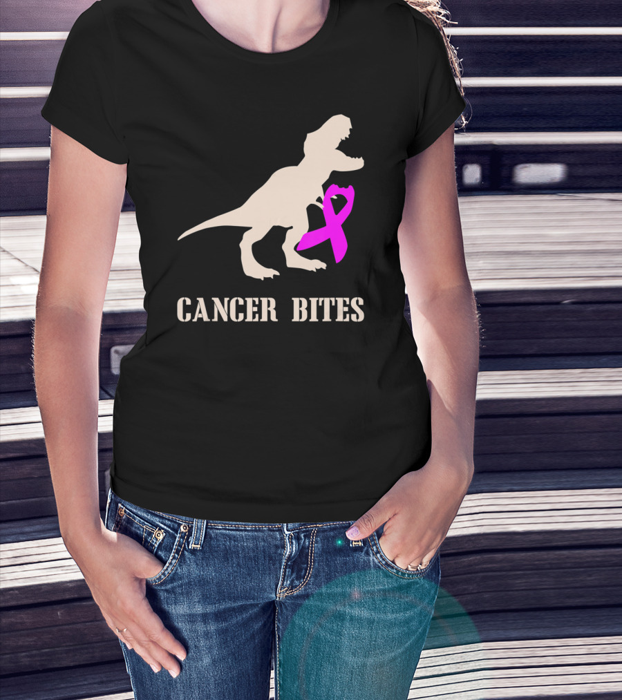 Cancer Bites Breast Cancer Dinosaur Pink T-Shirt