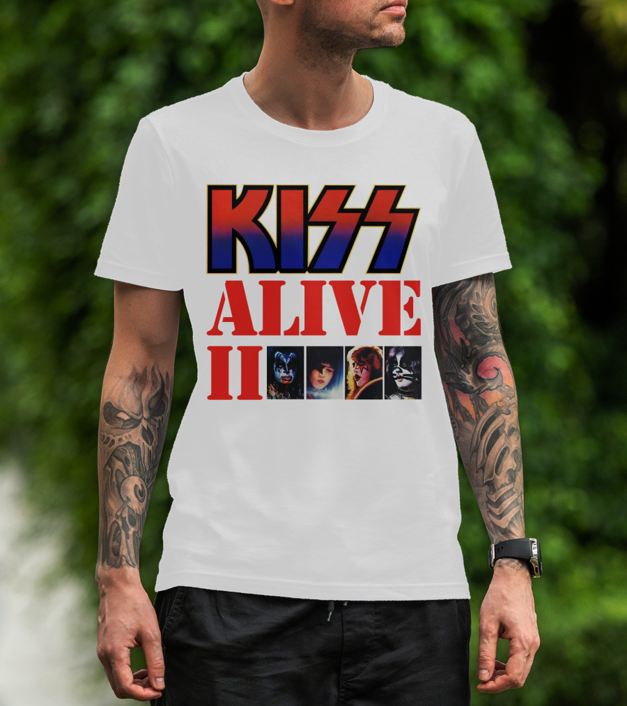 The KISS ALIVE II T-shirt is designed for everyday wear and a consistent fit. Fabric is pre-shrunk ring-spun cotton with durable stitching. See the size chart below for exact measurements.