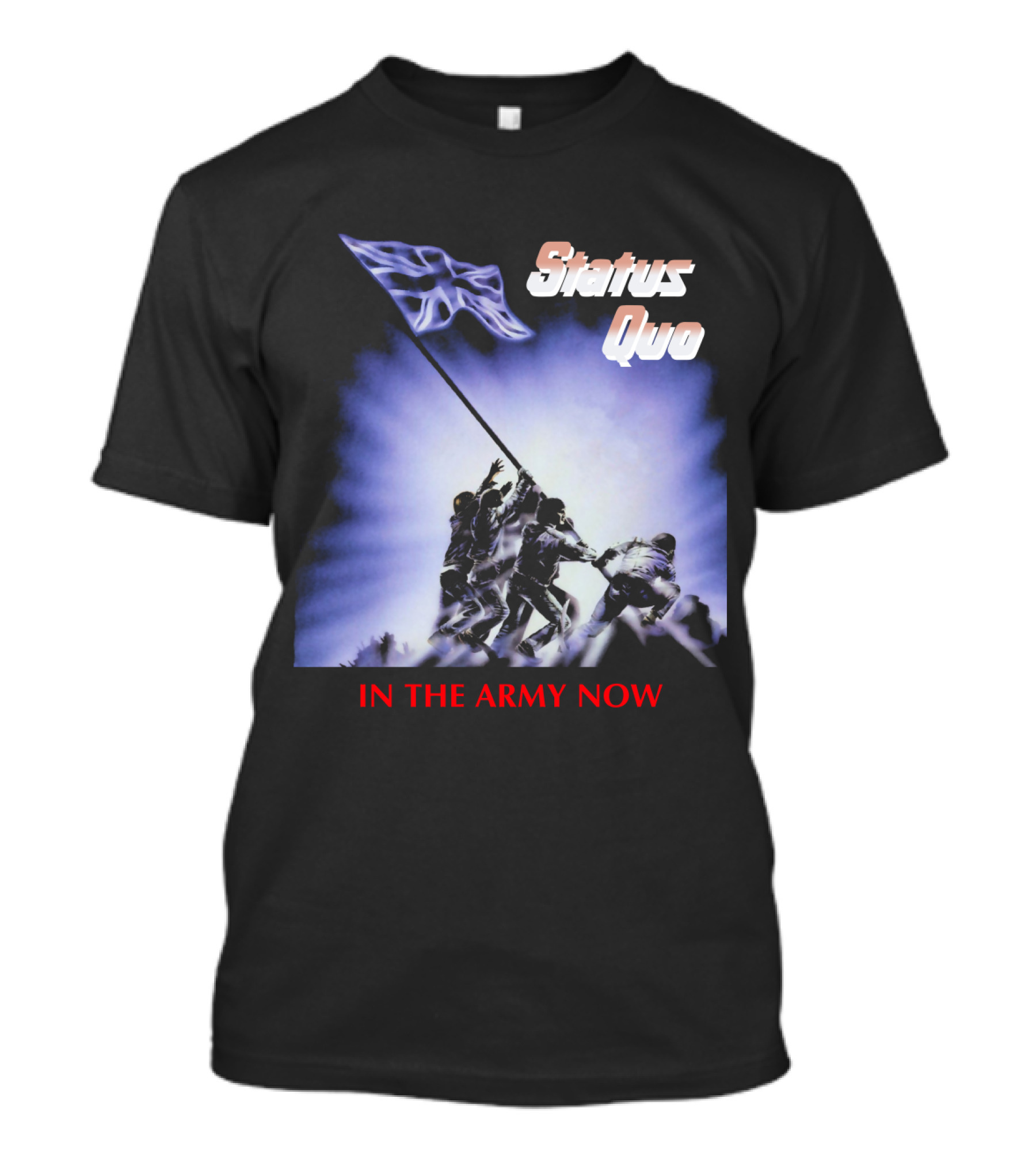 The Status Quo In the Army Now T-shirt is designed for everyday wear and a consistent fit. Fabric is pre-shrunk ring-spun cotton with durable stitching. See the size chart below for exact measurements.