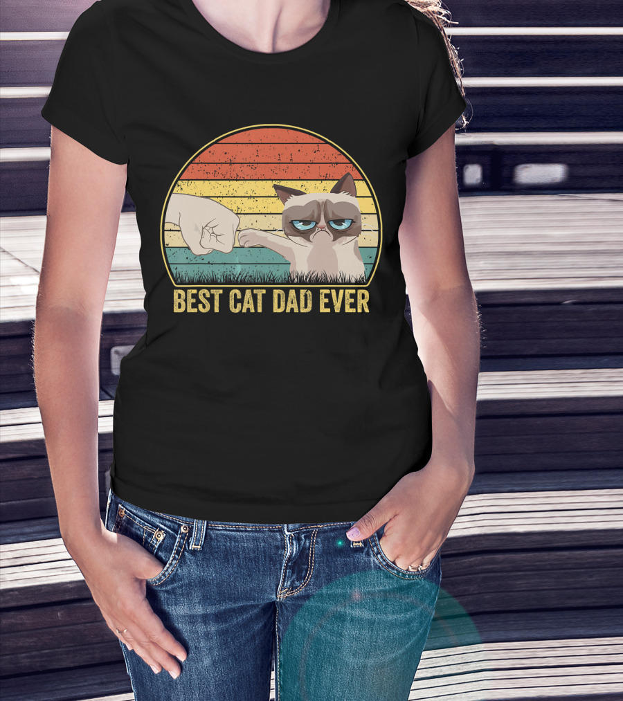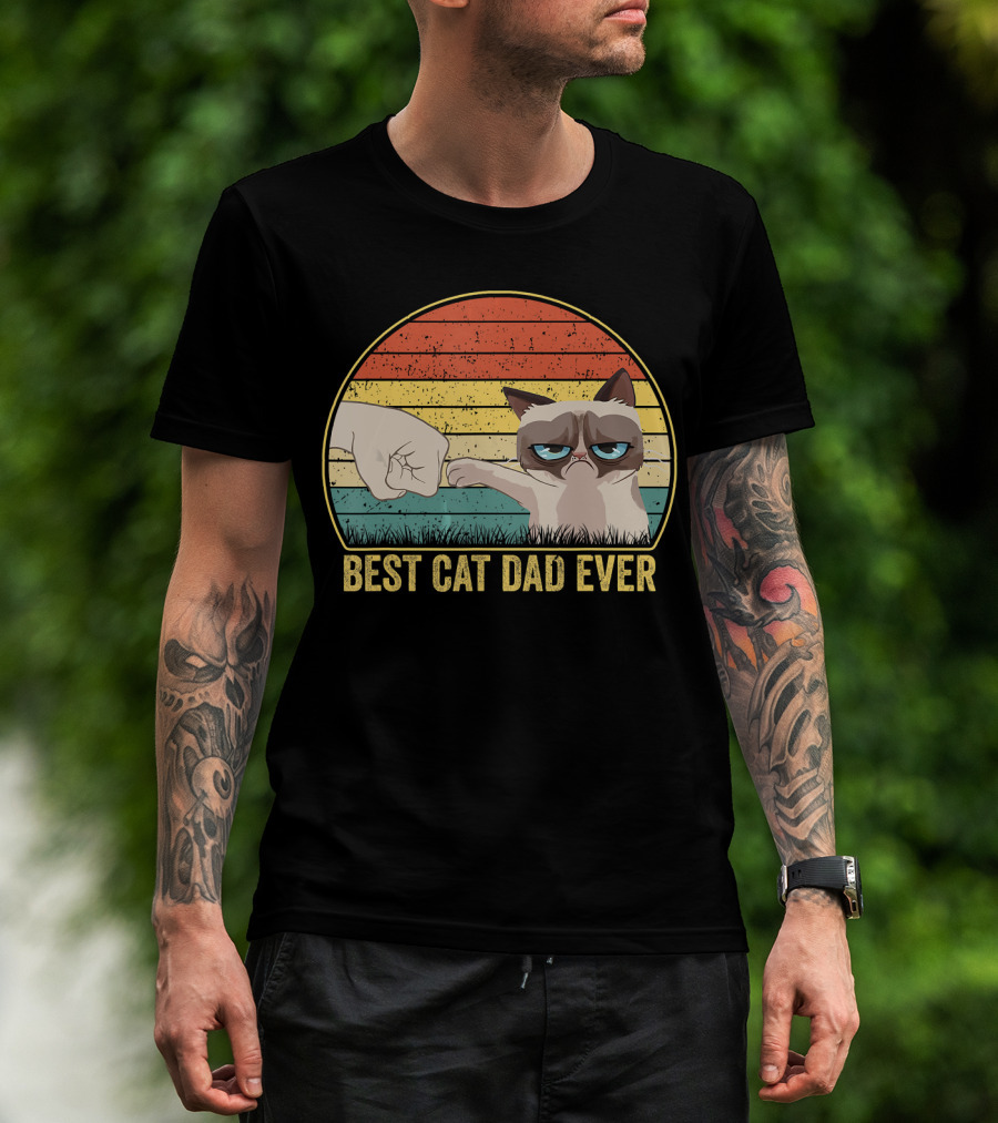 Best Cat Dad Ever Fist Bump Retro Style Cat Daddy T-Shirt