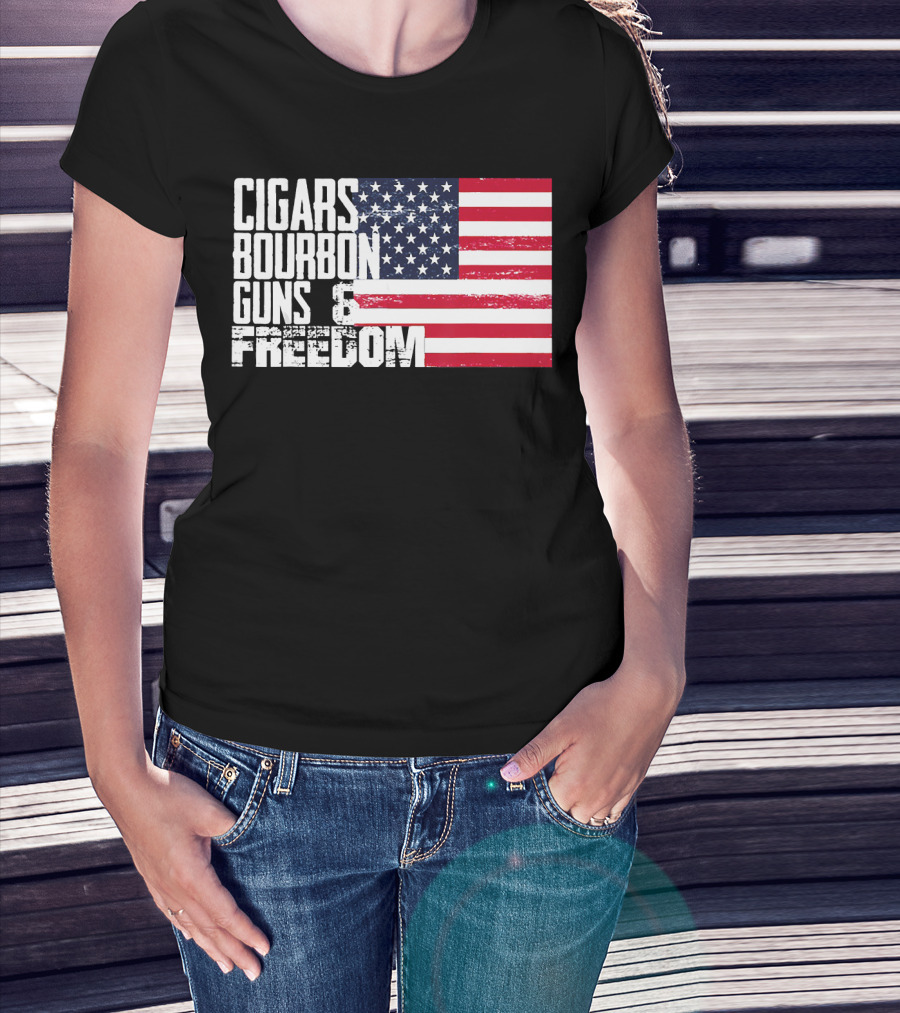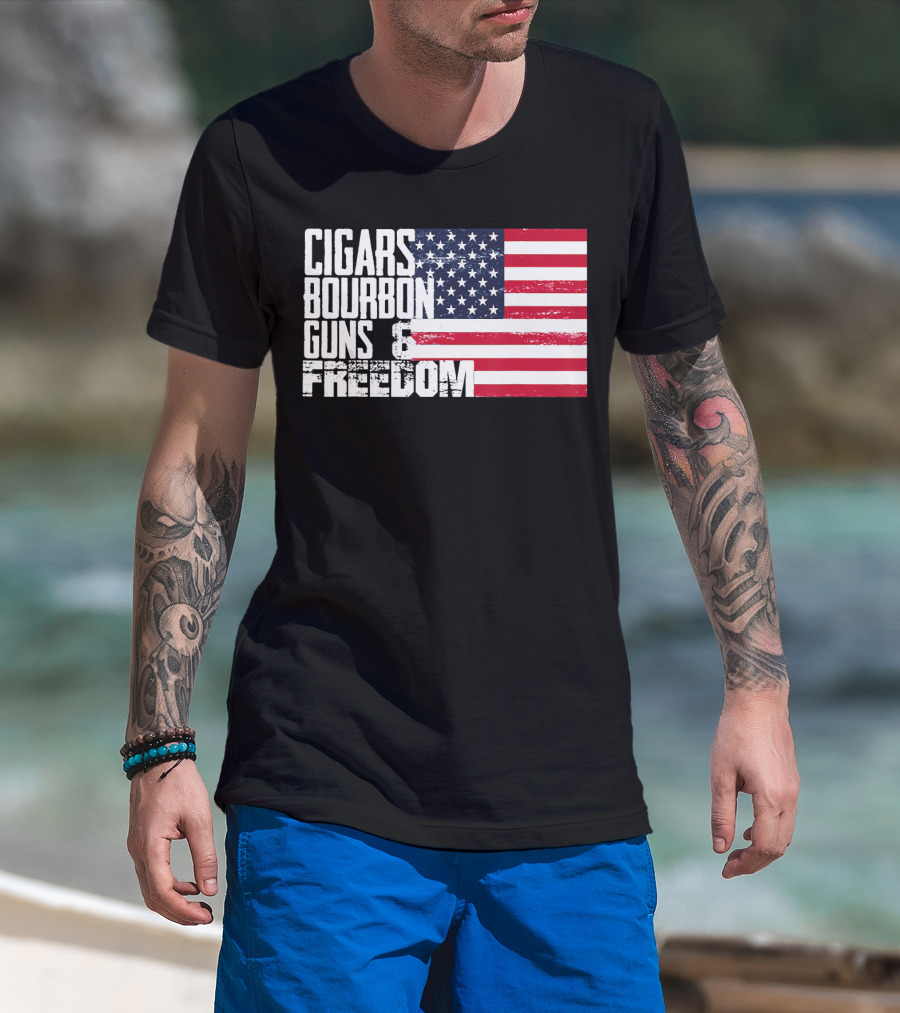 Cigars Bourbon Guns Freedom American Flag T-Shirt