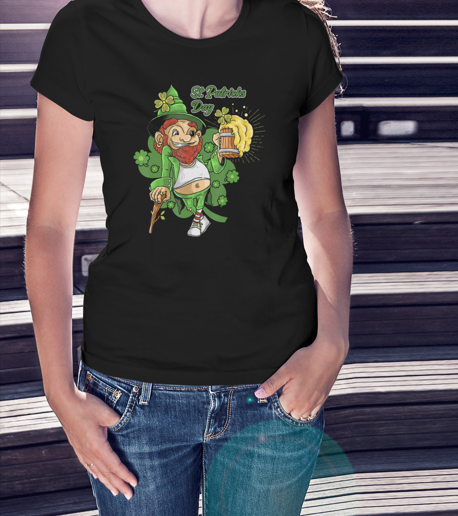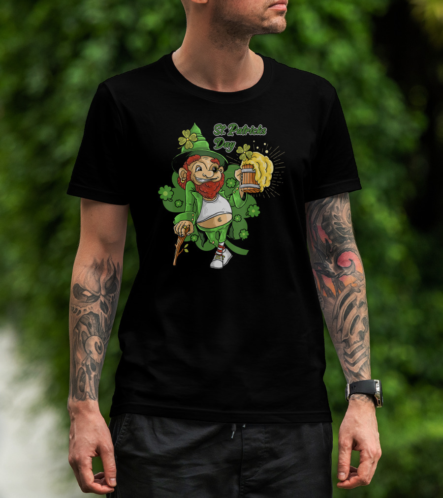 St Patricks Day Lucky Irish Leprechaun With Beer And Shamrocks T-Shirt