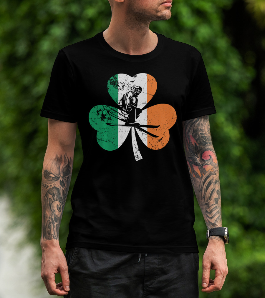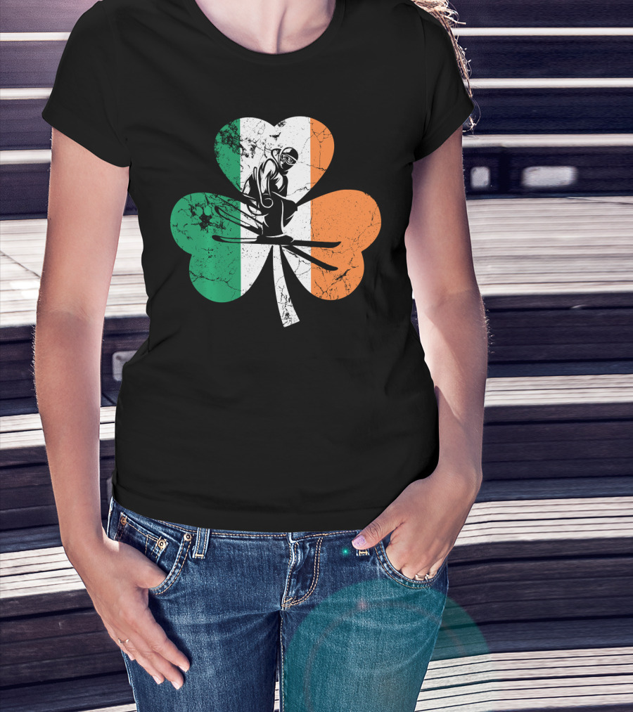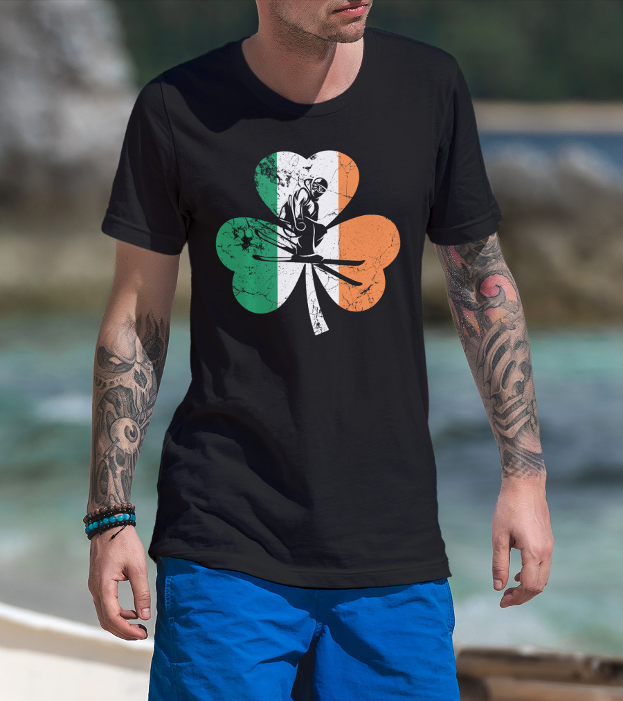 Skiing Shamrock St Patrick's Day Ireland Irish Flag T-Shirt