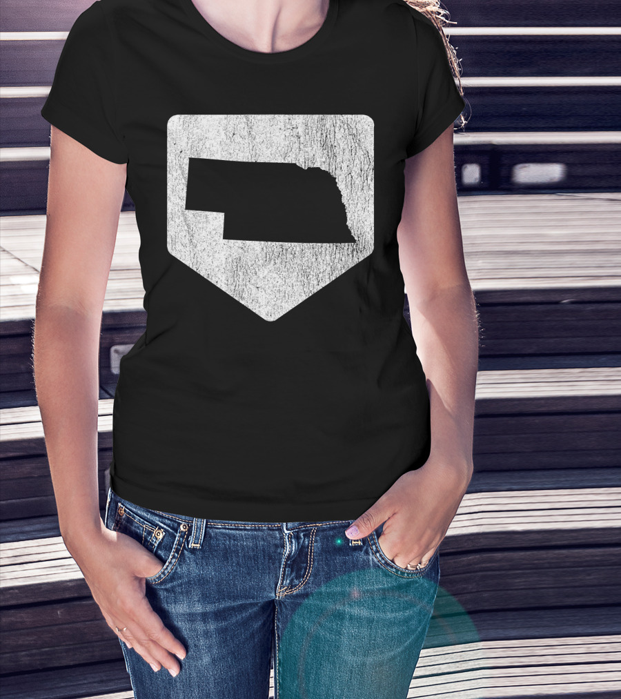 Cool Nebraska Baseball Home Plate State Outline T-Shirt