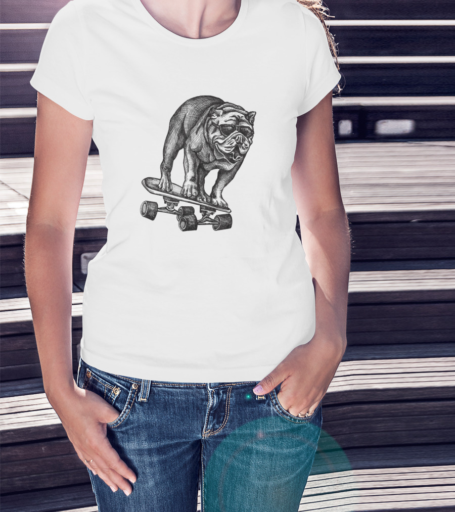 The Cool Skateboarding English Bulldog T-shirt is designed for everyday wear and a consistent fit. Fabric is pre-shrunk ring-spun cotton with durable stitching. See the size chart below for exact measurements.