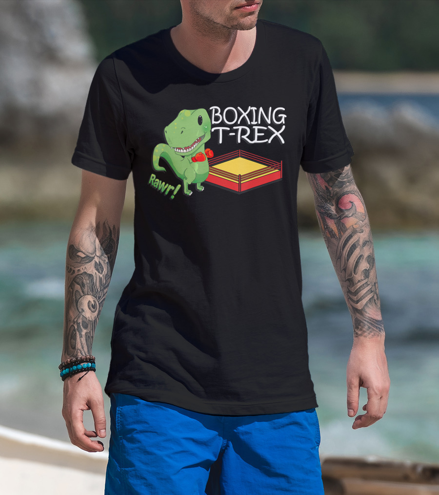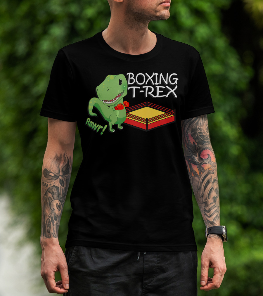 Boxing T-Rex Rawr Dinosaur With Gloves In Ring T-Shirt