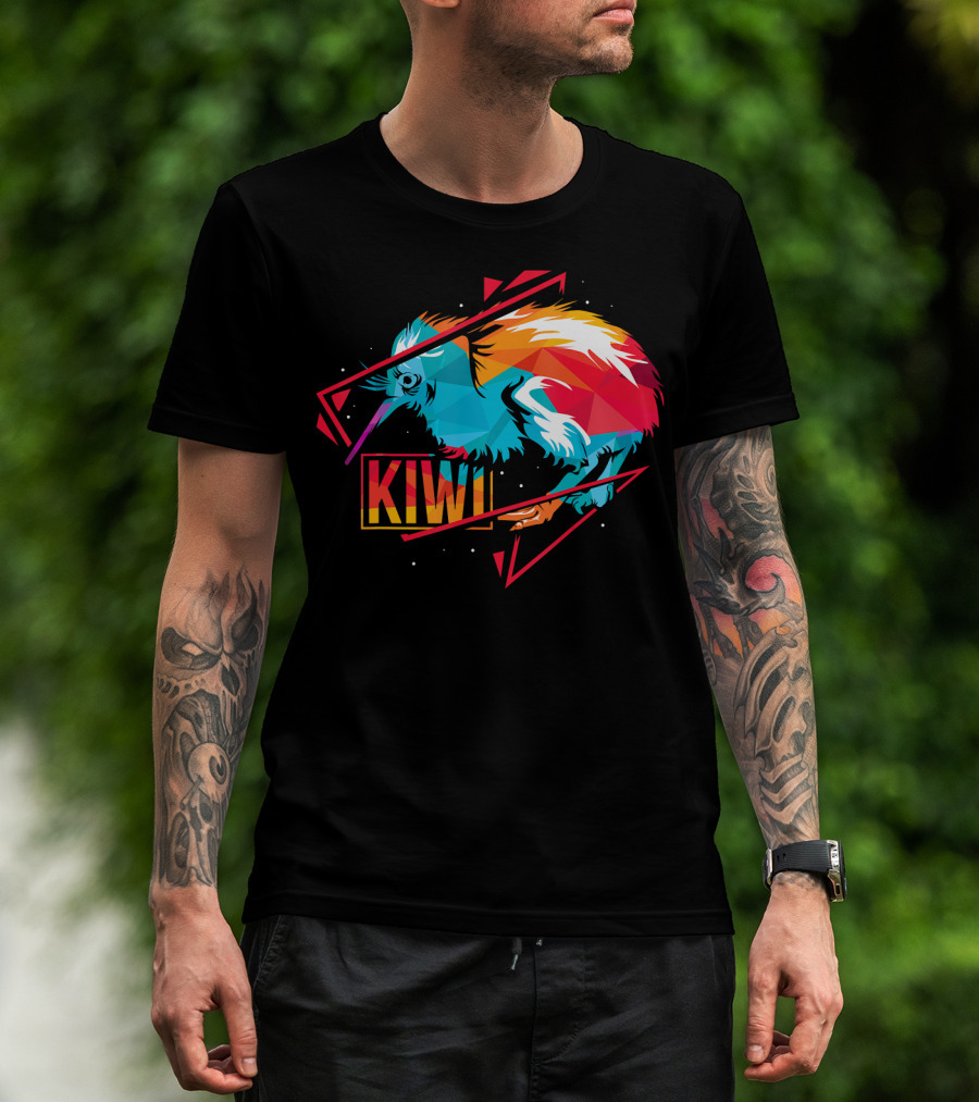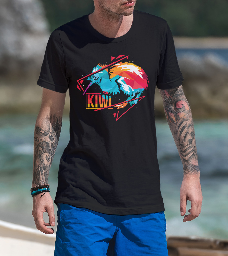 Cute Kiwi Bird New Zealand Colorful Geometric T-Shirt