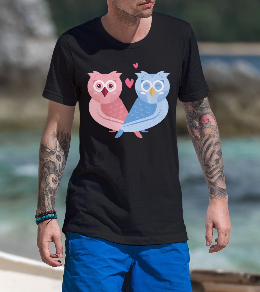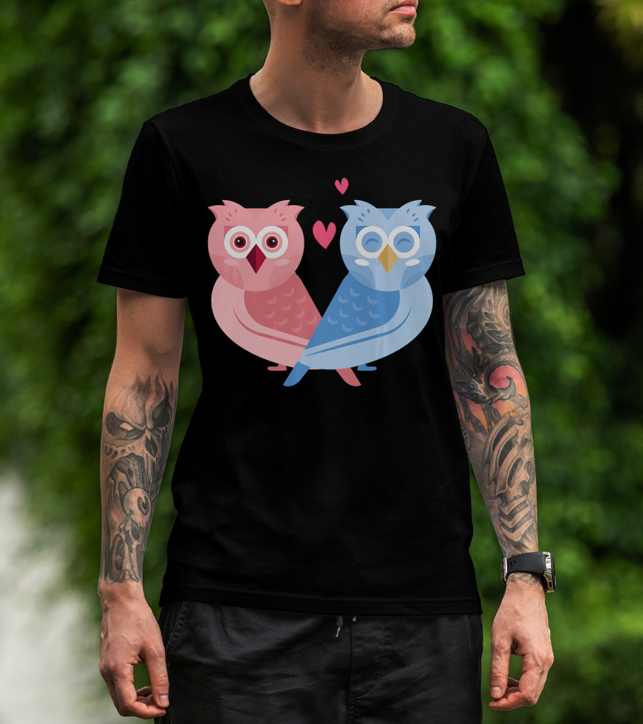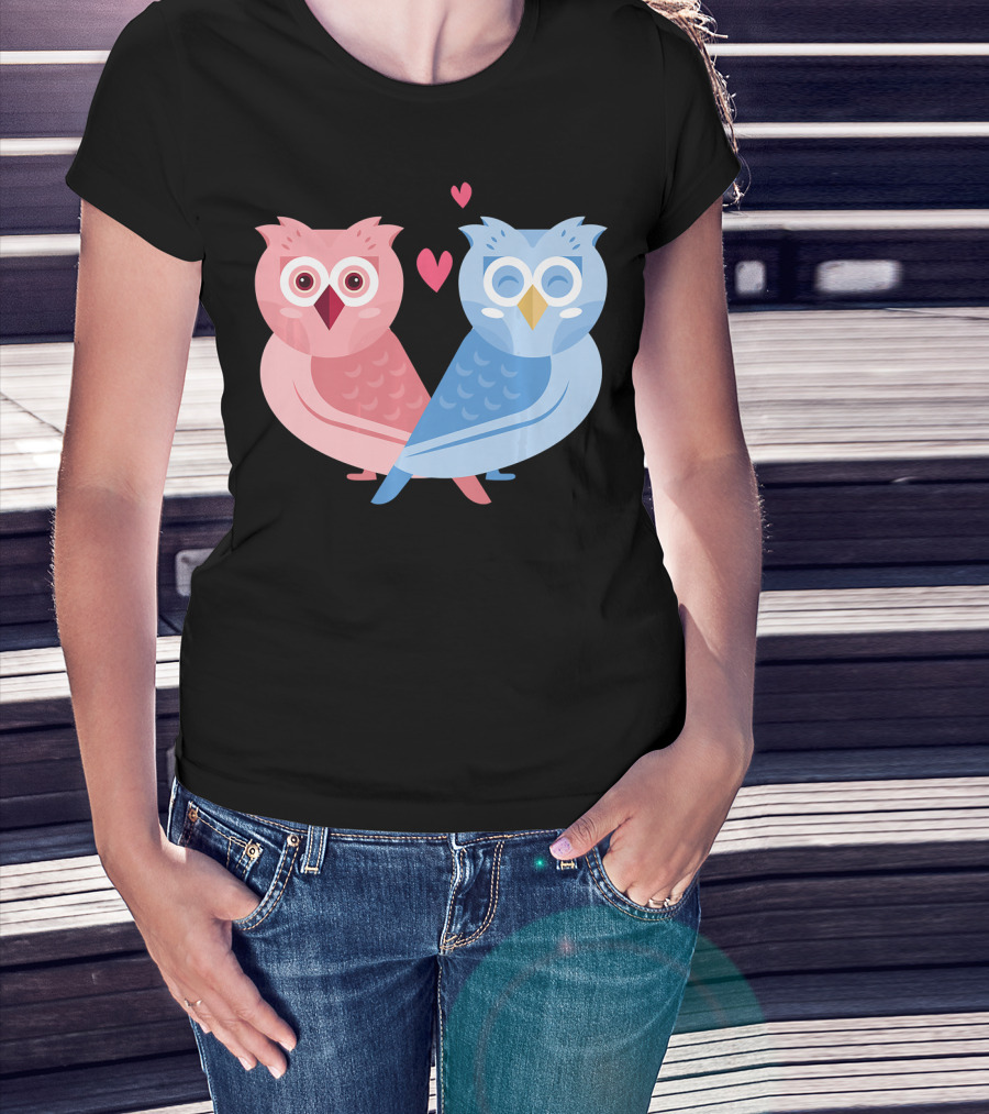 Cute Owls Birds In Love Couple With Hearts T-Shirt