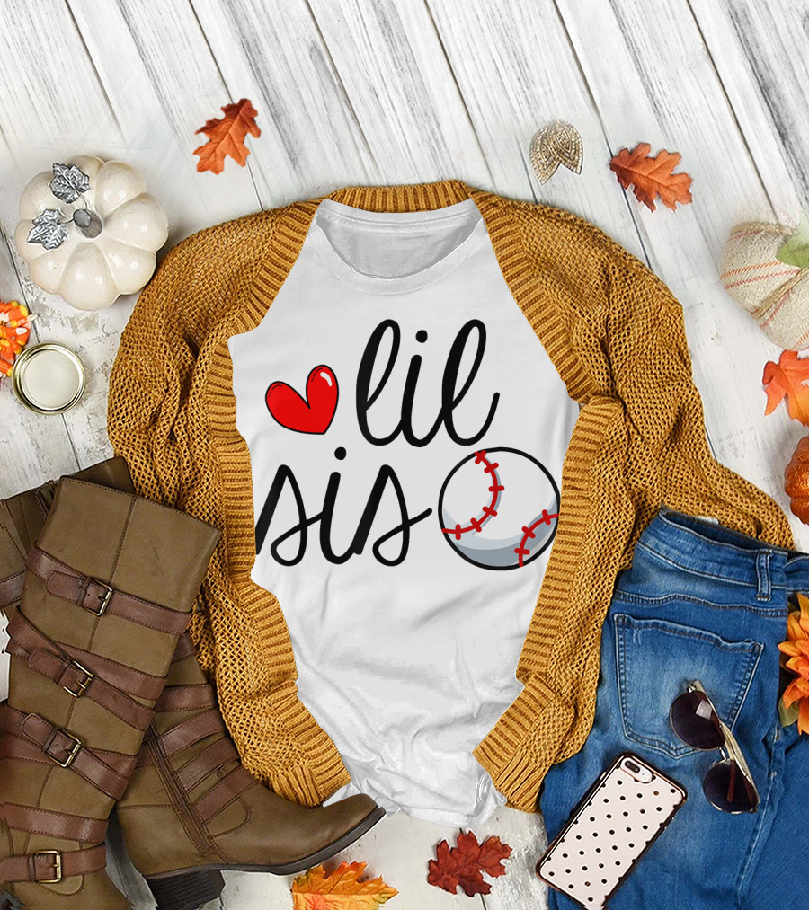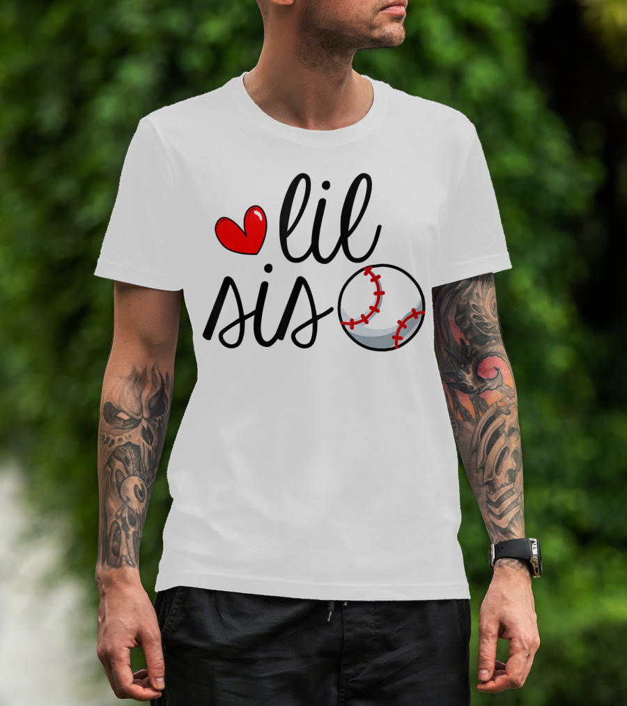 The Lil Sis Heart Baseball Sports Playful T-shirt is designed for everyday wear and a consistent fit. Fabric is pre-shrunk ring-spun cotton with durable stitching. See the size chart below for exact measurements.