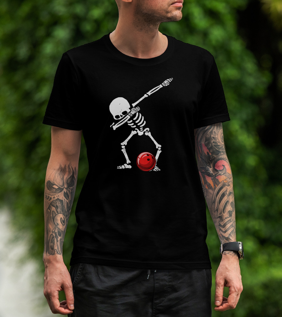 Dabbing Bowling Skeleton With Red Ball T-Shirt