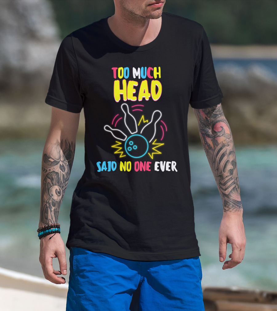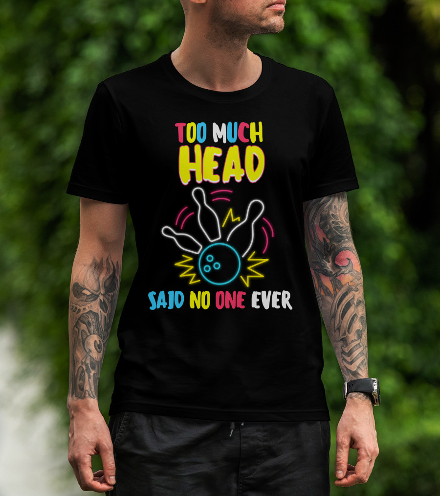 Too Much Head Said No One Ever Bowling Neon Pins Burst T-Shirt
