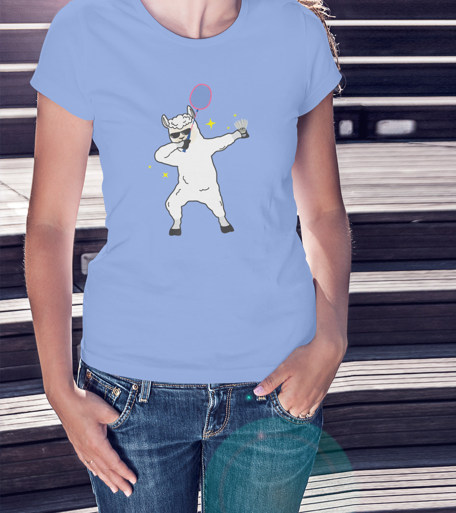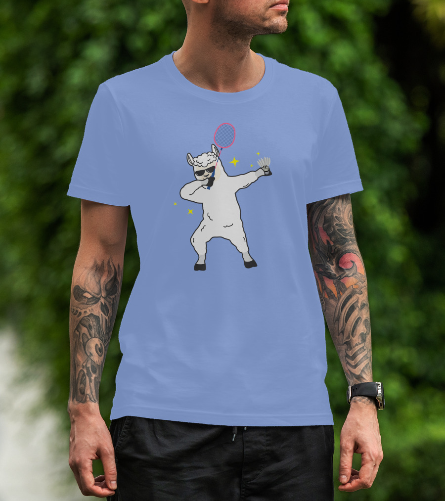 Dabbing Llama Badminton Racket And Shuttlecock T-Shirt