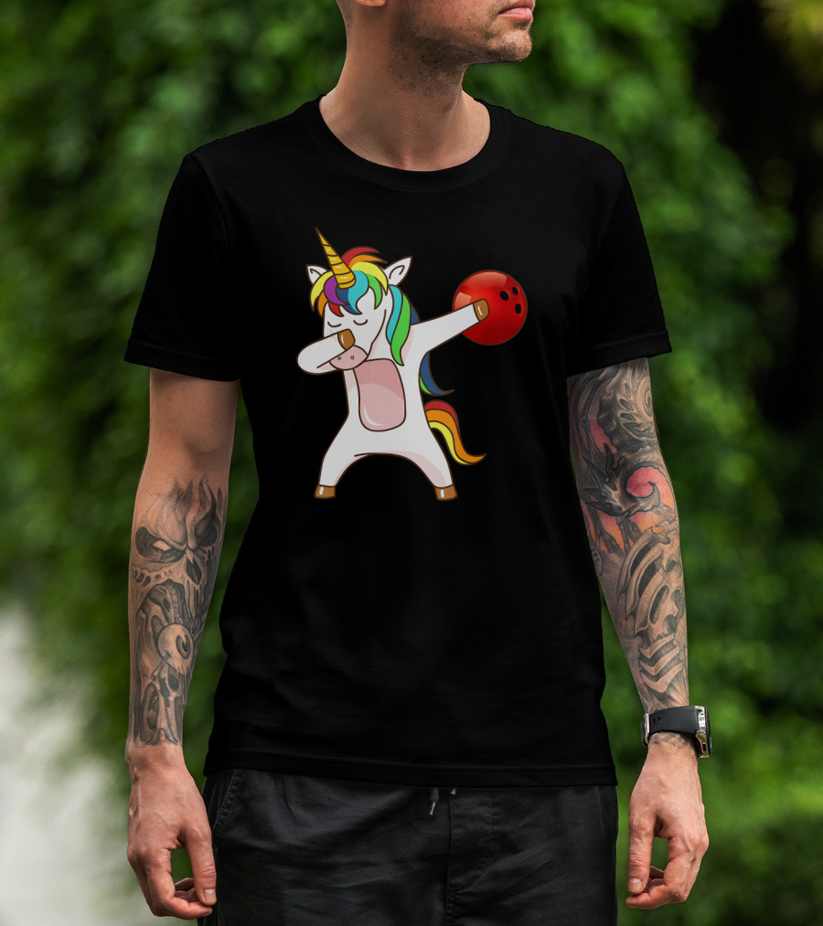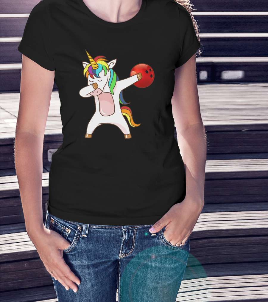 Dabbing Unicorn With Bowling Ball Rainbow Unico T-Shirt