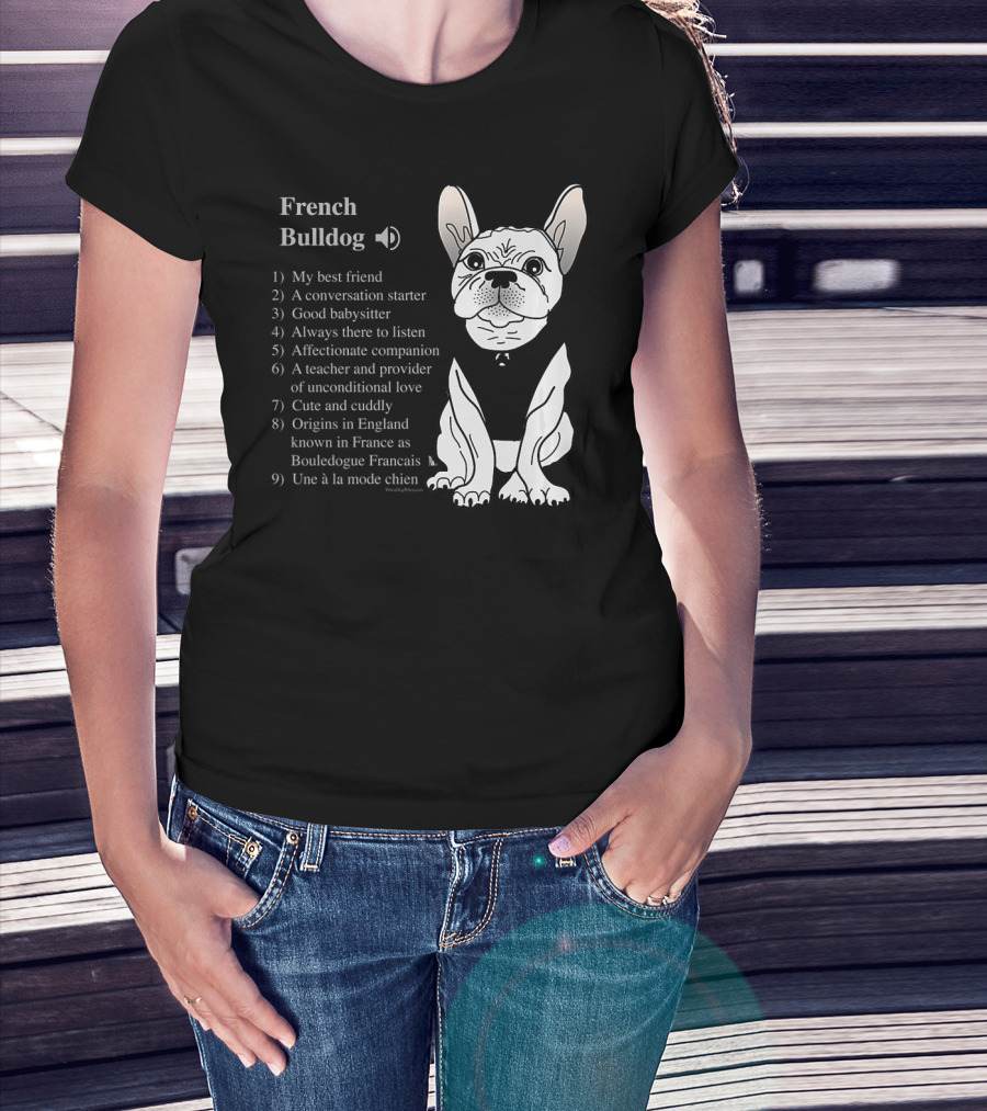 The French Bulldog My Best Friend Cute and Cuddly Une à la Mode Chien T-shirt is designed for everyday wear and a consistent fit. Fabric is pre-shrunk ring-spun cotton with durable stitching. See the size chart below for exact measurements.