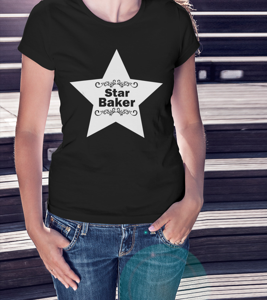 The Star Baker For Baking Show Fans T-shirt is designed for everyday wear and a consistent fit. Fabric is pre-shrunk ring-spun cotton with durable stitching. See the size chart below for exact measurements.
