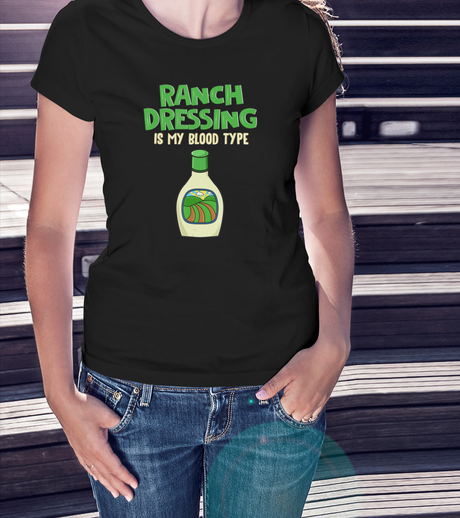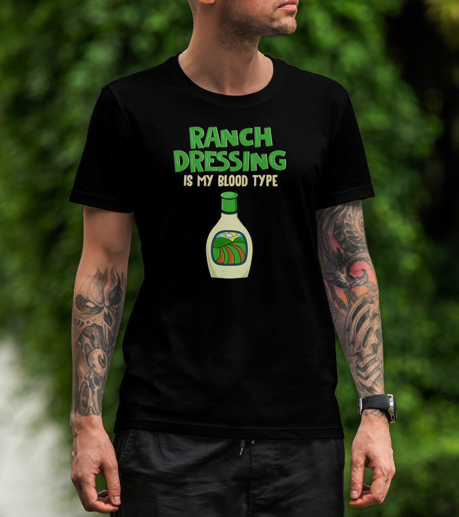 The Ranch Dressing Is My Blood Type T-shirt is designed for everyday wear and a consistent fit. Fabric is pre-shrunk ring-spun cotton with durable stitching. See the size chart below for exact measurements.