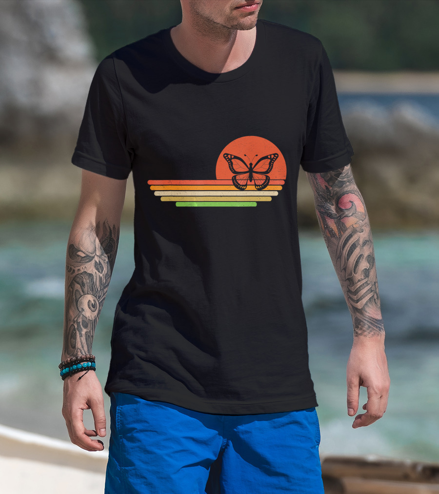 Distressed Butterfly Retro Sunset Stripes T-Shirt