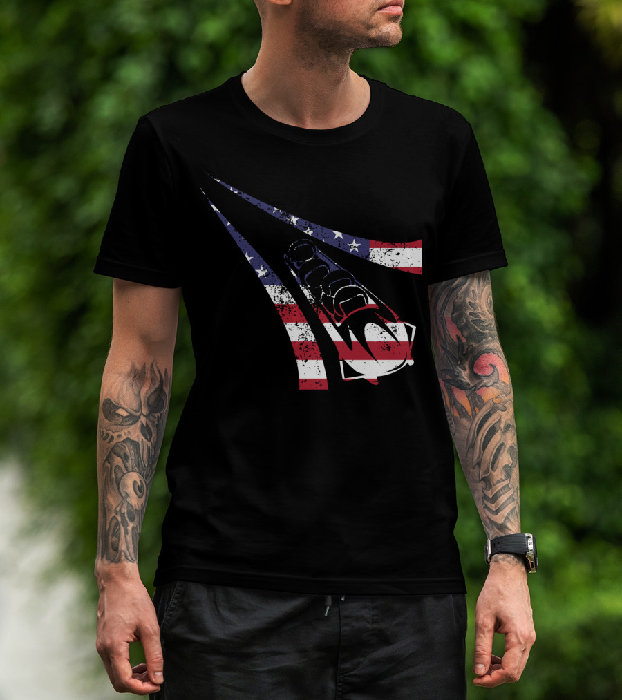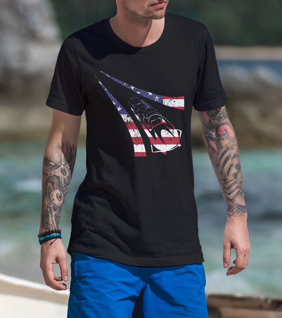 The USA American Flag Bobsled Track T-shirt is designed for everyday wear and a consistent fit. Fabric is pre-shrunk ring-spun cotton with durable stitching. See the size chart below for exact measurements.