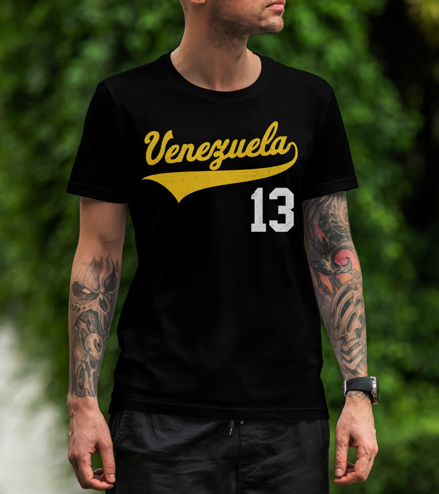 Venezuela Vintage Baseball Script Number 13 T-Shirt