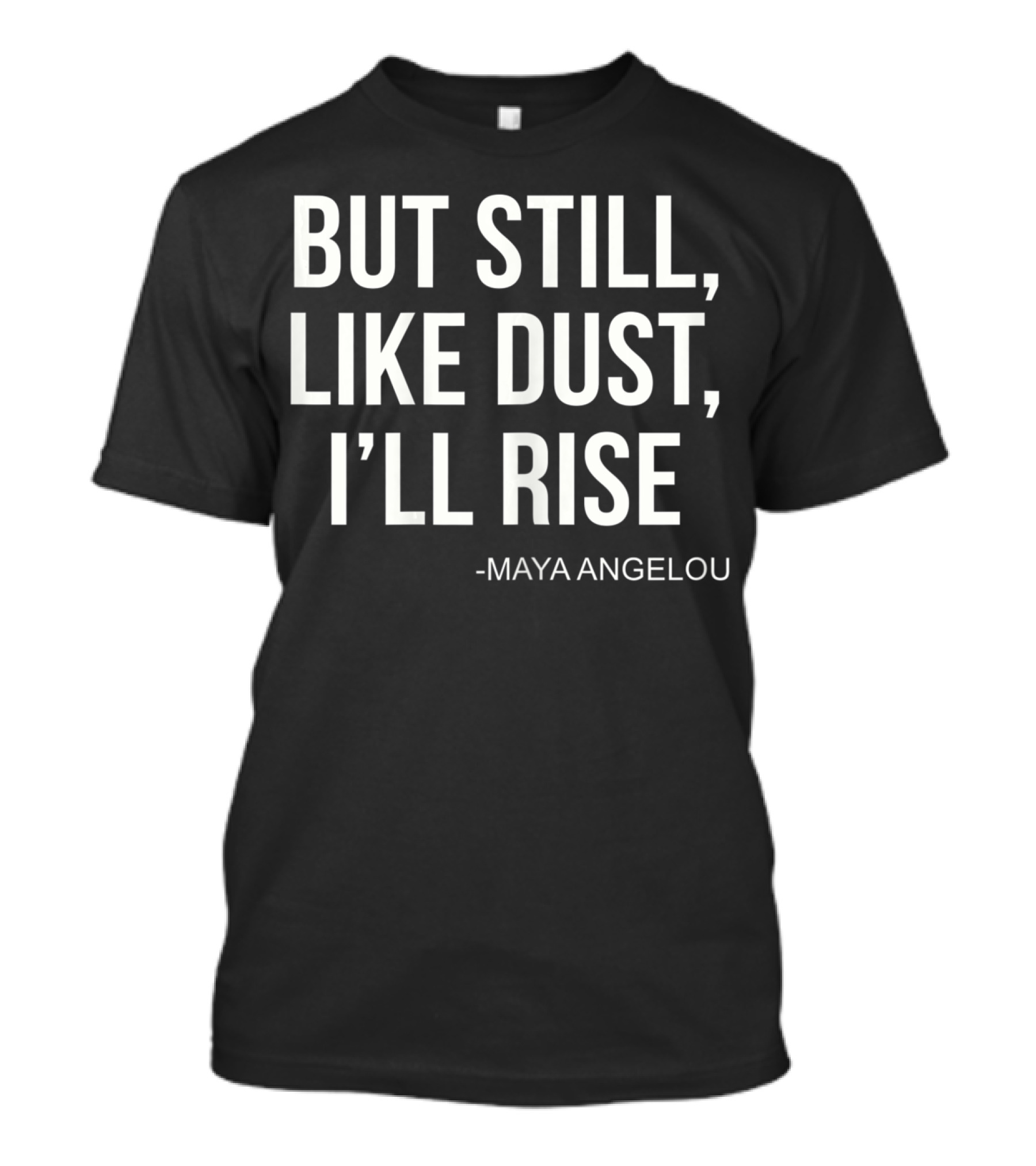 The But Still Like Dust I'll Rise Maya Angelou T-shirt is designed for everyday wear and a consistent fit. Fabric is pre-shrunk ring-spun cotton with durable stitching. See the size chart below for exact measurements.