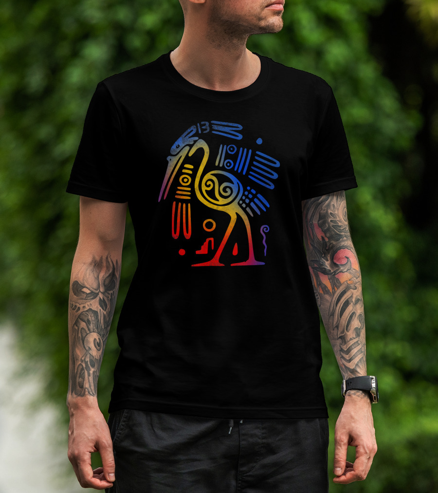 Vintage Aztec Bird Drawing With Temple Arch Elements T-Shirt
