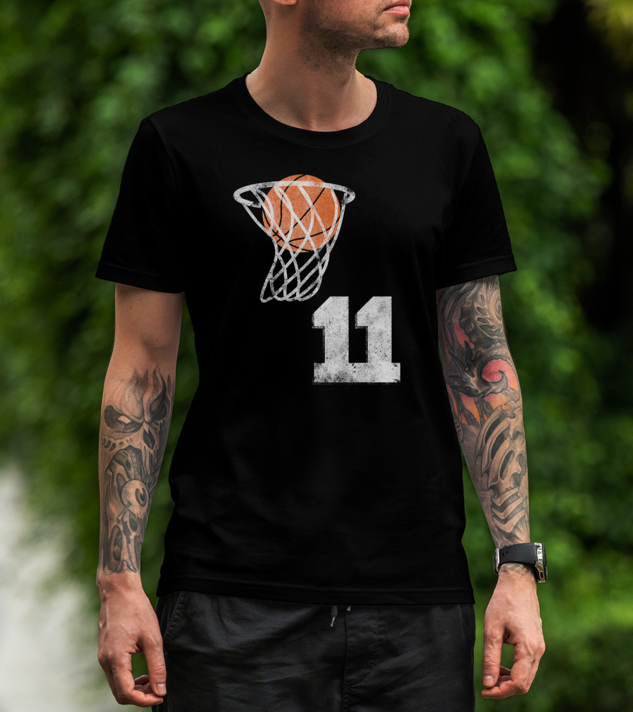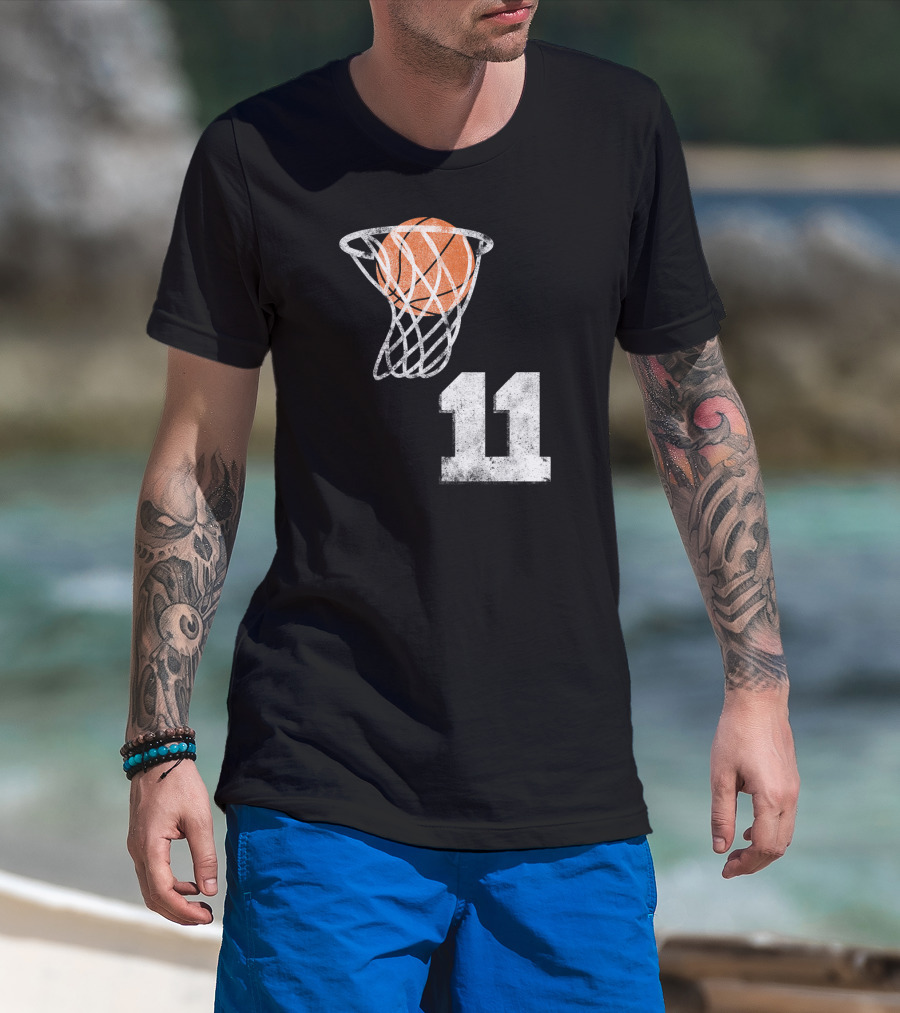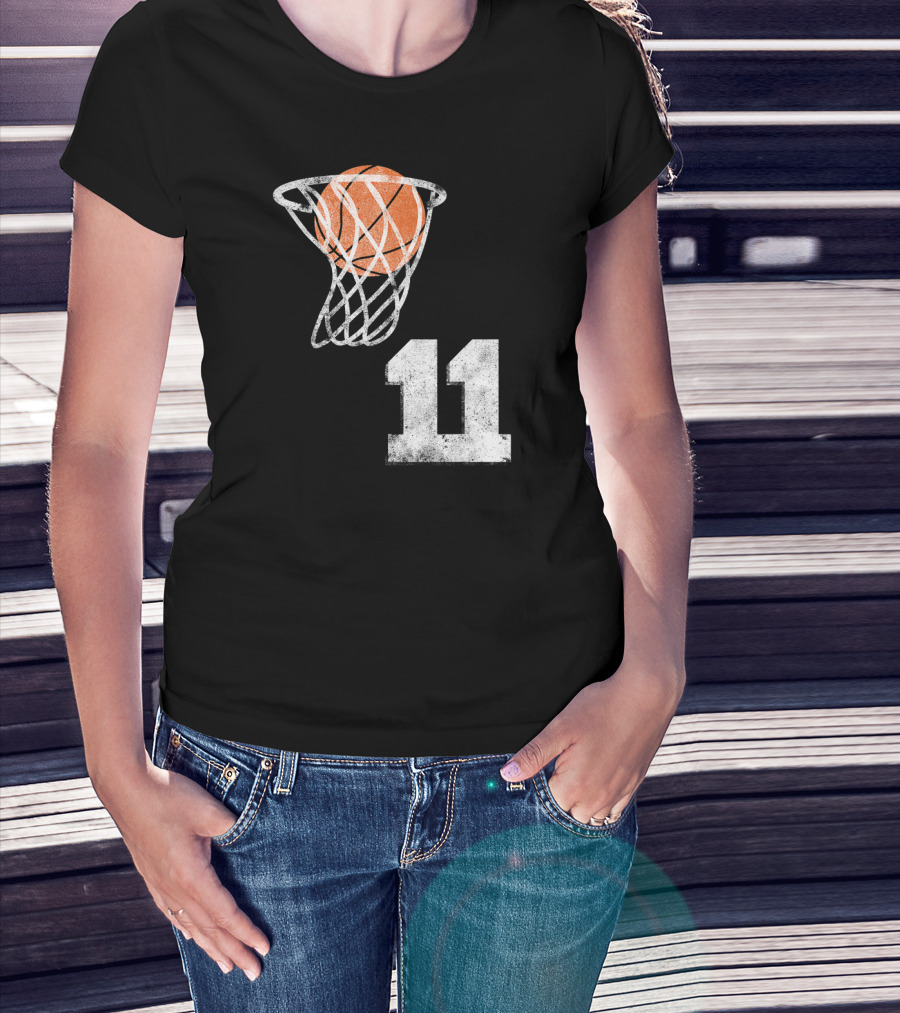 The Basketball Hoop Swish Number 11 T-shirt is designed for everyday wear and a consistent fit. Fabric is pre-shrunk ring-spun cotton with durable stitching. See the size chart below for exact measurements.