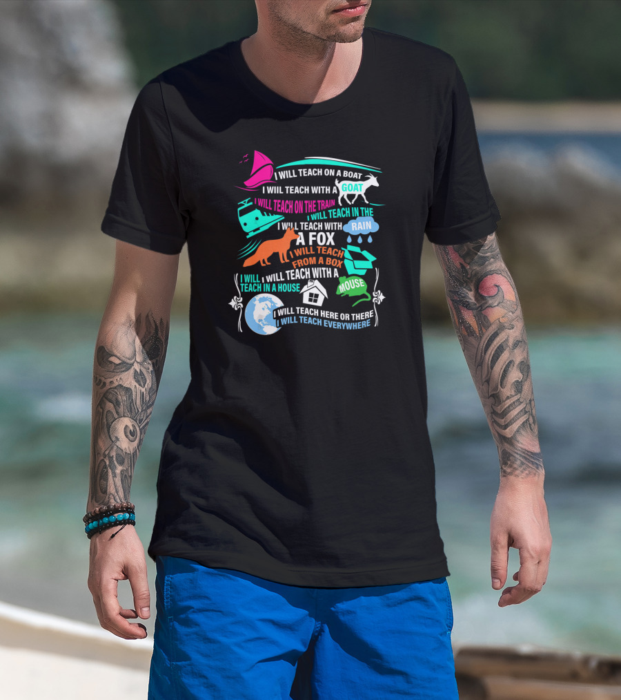 I Will Teach On A Boat A Goat A Train In The Rain With A Fox From A Box With A Mouse In A House Here Or There Everywhere T-Shirt