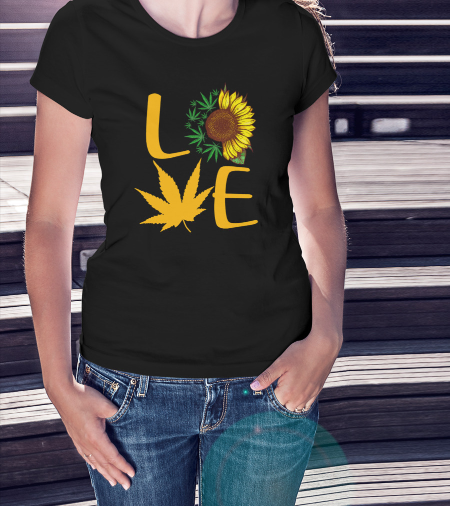 Love Sunflower And Cannabis Marijuana Weed Lover T-Shirt