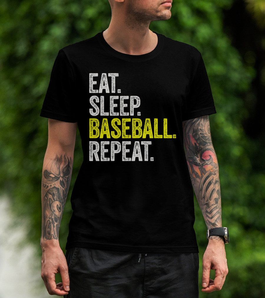 EAT SLEEP BASEBALL REPEAT Player Pitche T-Shirt
