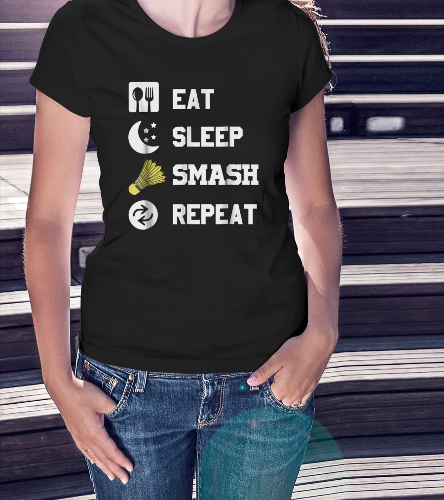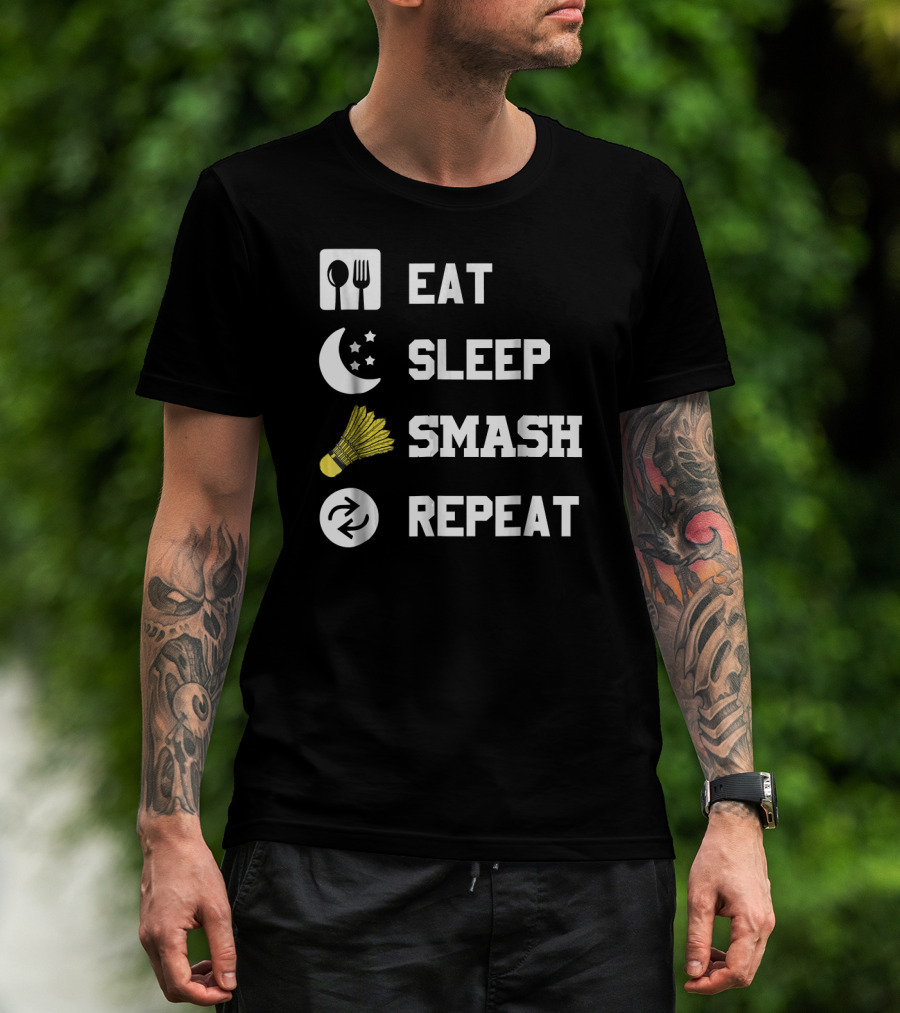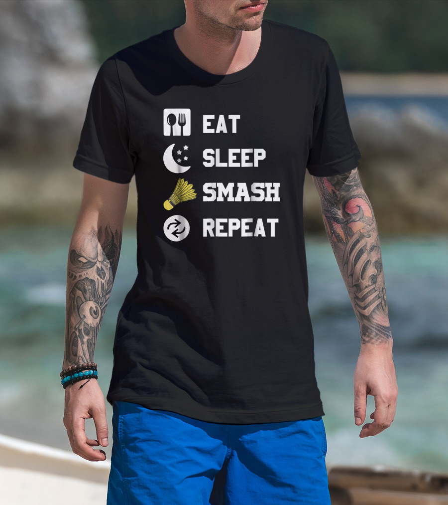 Eat Sleep Smash Repeat Funny Shuttlecock T-Shirt
