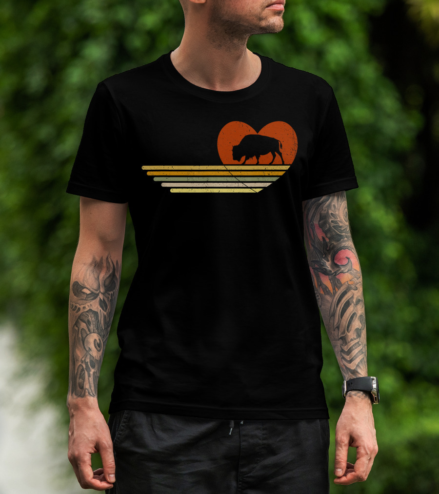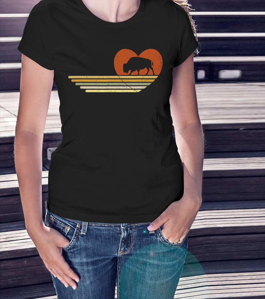 Vintage Bison Heart Retro Sunset Stripes T-Shirt