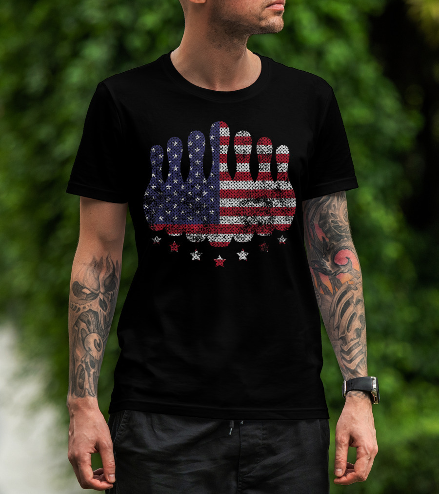 The Vintage Patriotic USA Flag Bowling Pins Stars T-shirt is designed for everyday wear and a consistent fit. Fabric is pre-shrunk ring-spun cotton with durable stitching. See the size chart below for exact measurements.