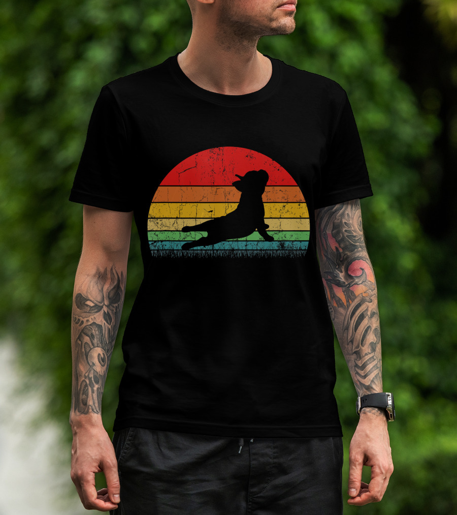 Vintage Yoga Bulldog Silhouette Sunset Frenchie T-Shirt
