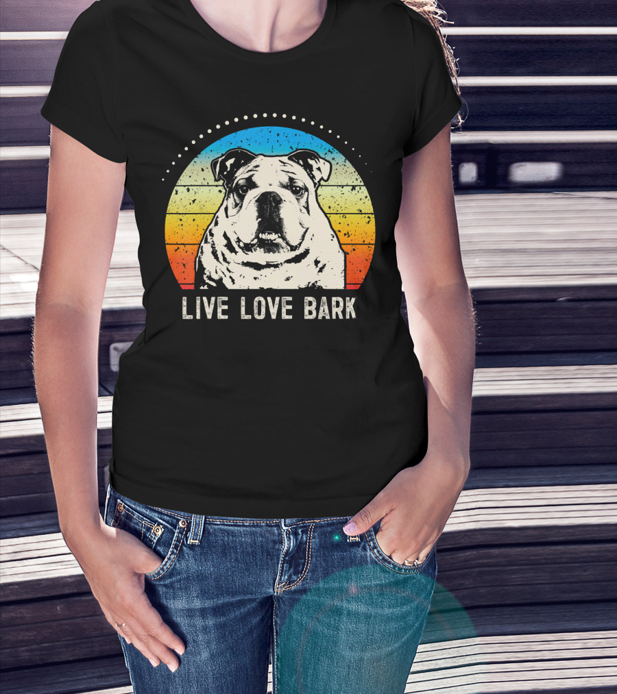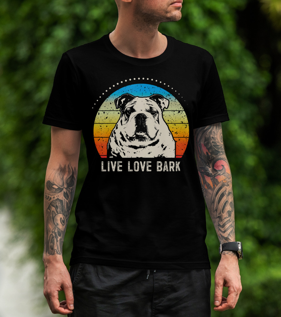 Live Love Bark Vintage English Bulldog Retro Sunset T-Shirt