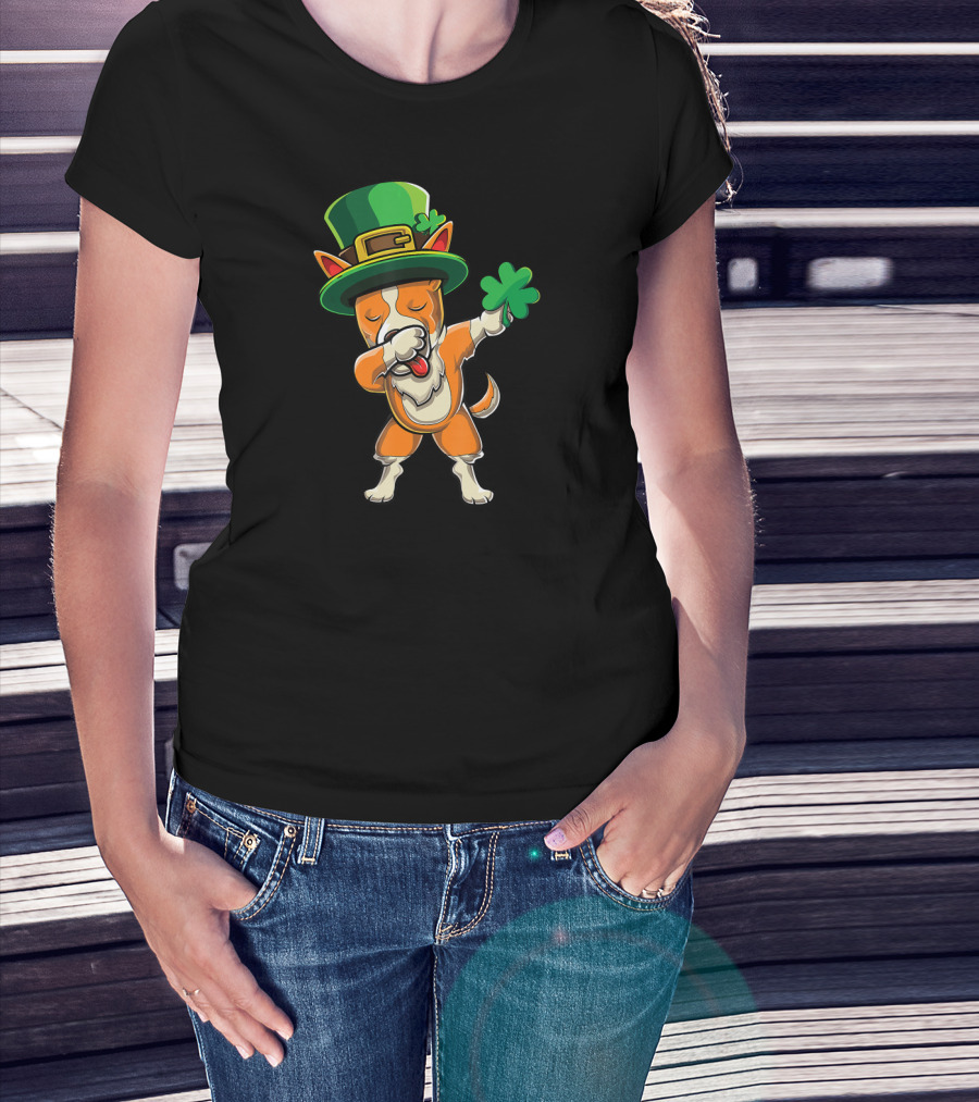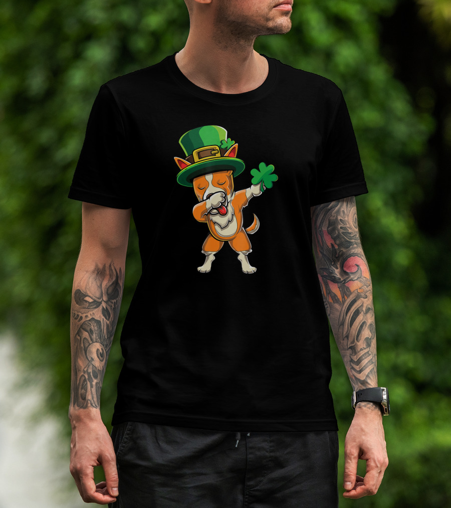 Leprechaun Hat Corgi Dabbing Shamrock St Paddys Day T-Shirt