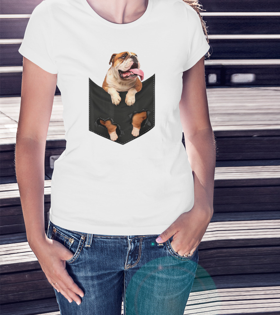 English Bulldog Pocket Mid Bulldog Peeking Out T-Shirt