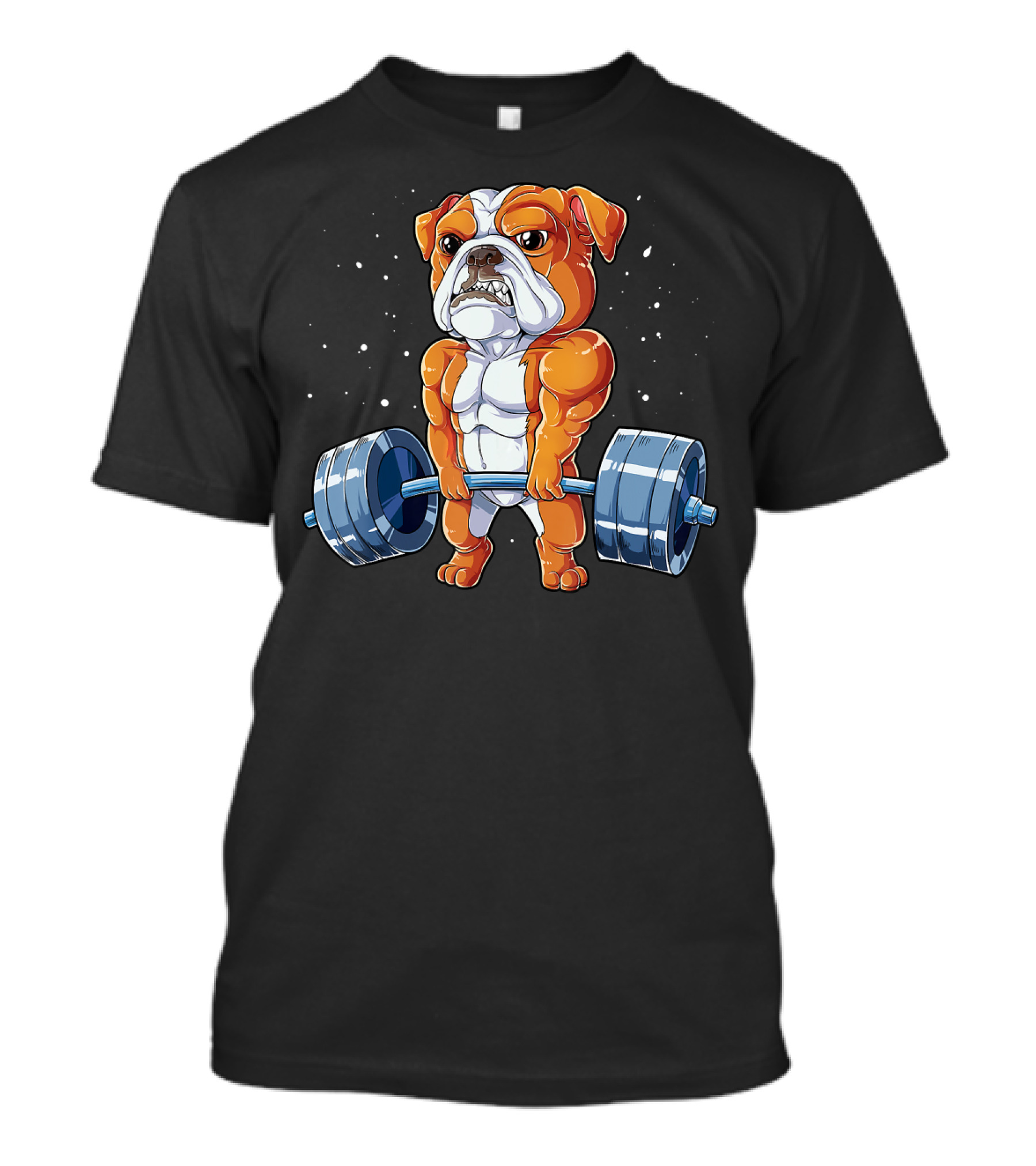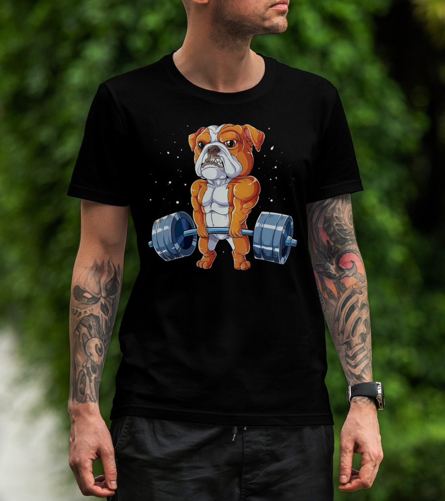 English Bulldog Weightlifting Humor Barbell Challenge T-Shirt