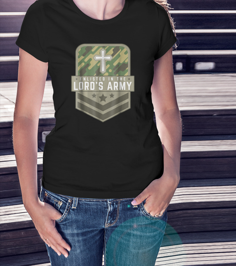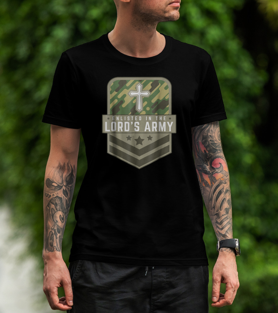 Enlisted In The Lord's Army Camo Cross Faith Religious T-Shirt