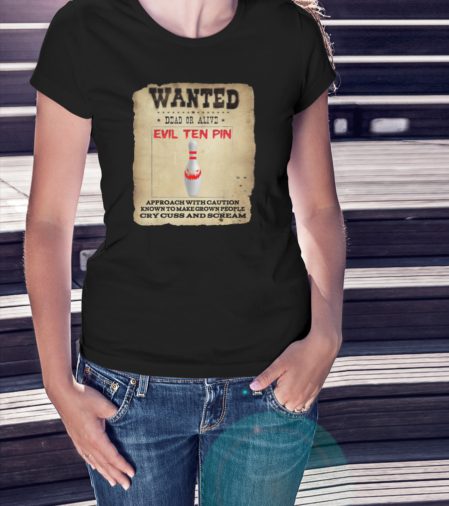 WANTED DEAD OR ALIVE EVIL TEN PIN APPROACH WITH CAUTION KNOWN TO MAKE GROWN PEOPLE CRY CUSS AND SCREAM T-Shirt