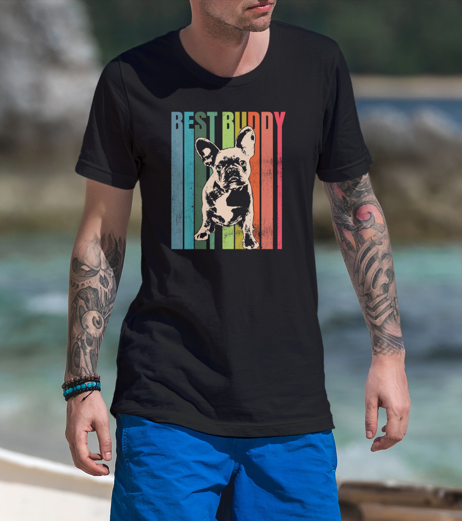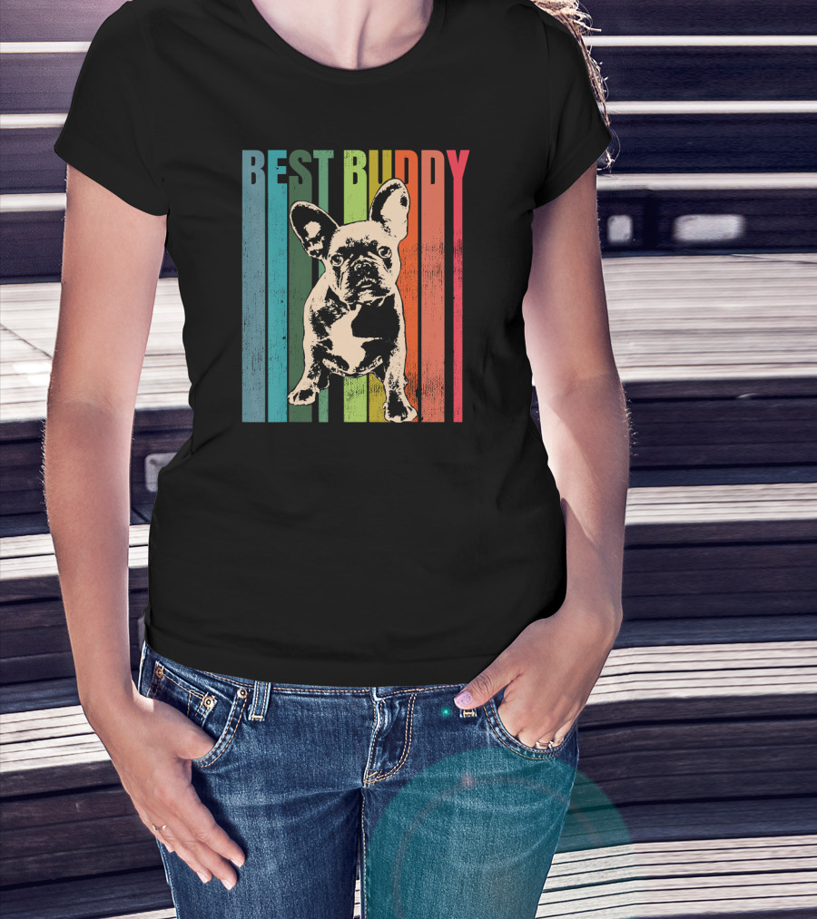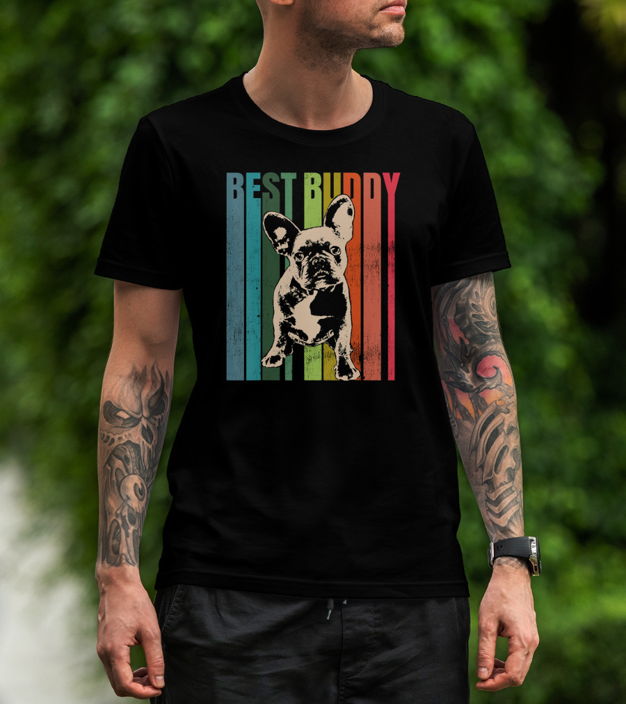 The Best Buddy Vintage French Bulldog T-shirt is designed for everyday wear and a consistent fit. Fabric is pre-shrunk ring-spun cotton with durable stitching. See the size chart below for exact measurements.